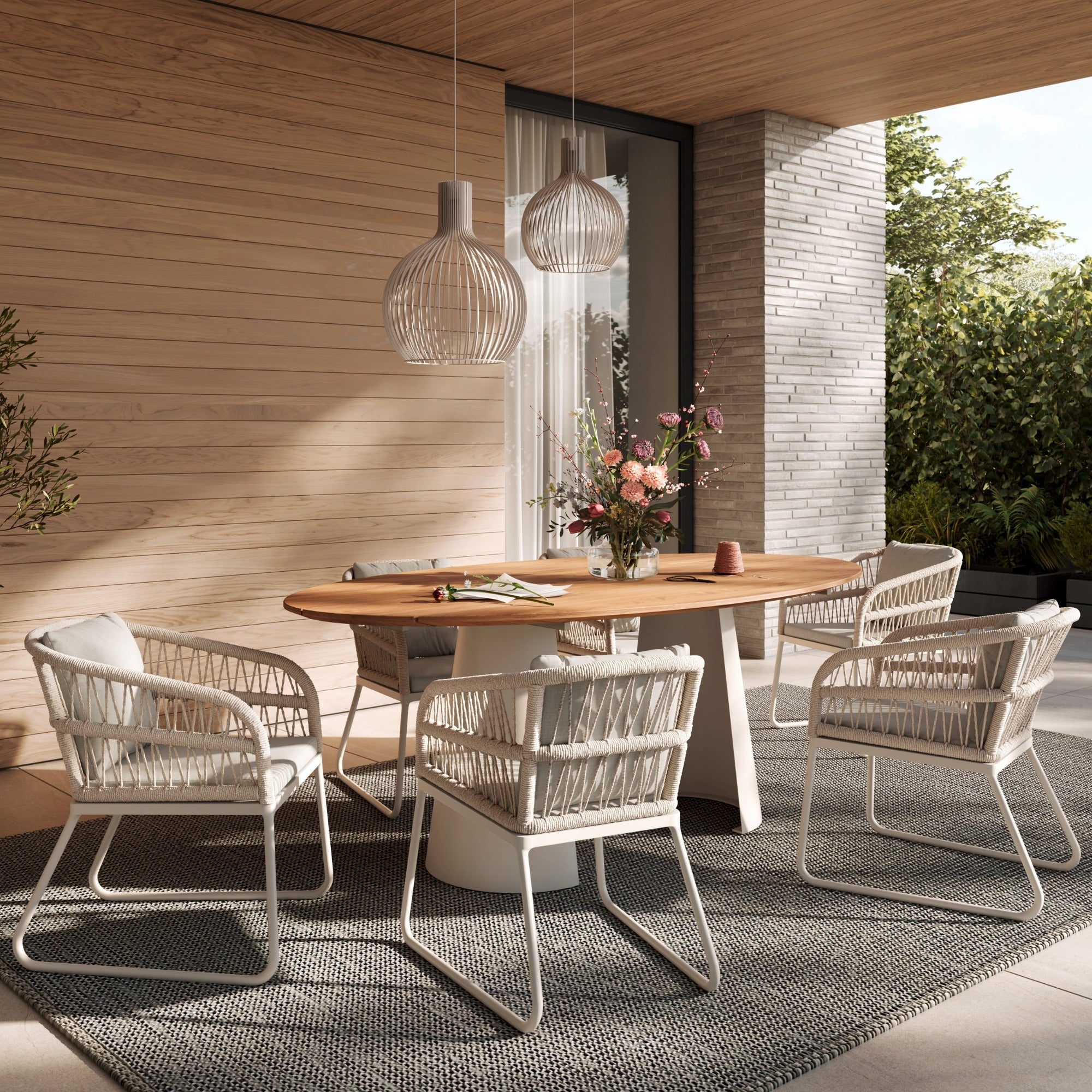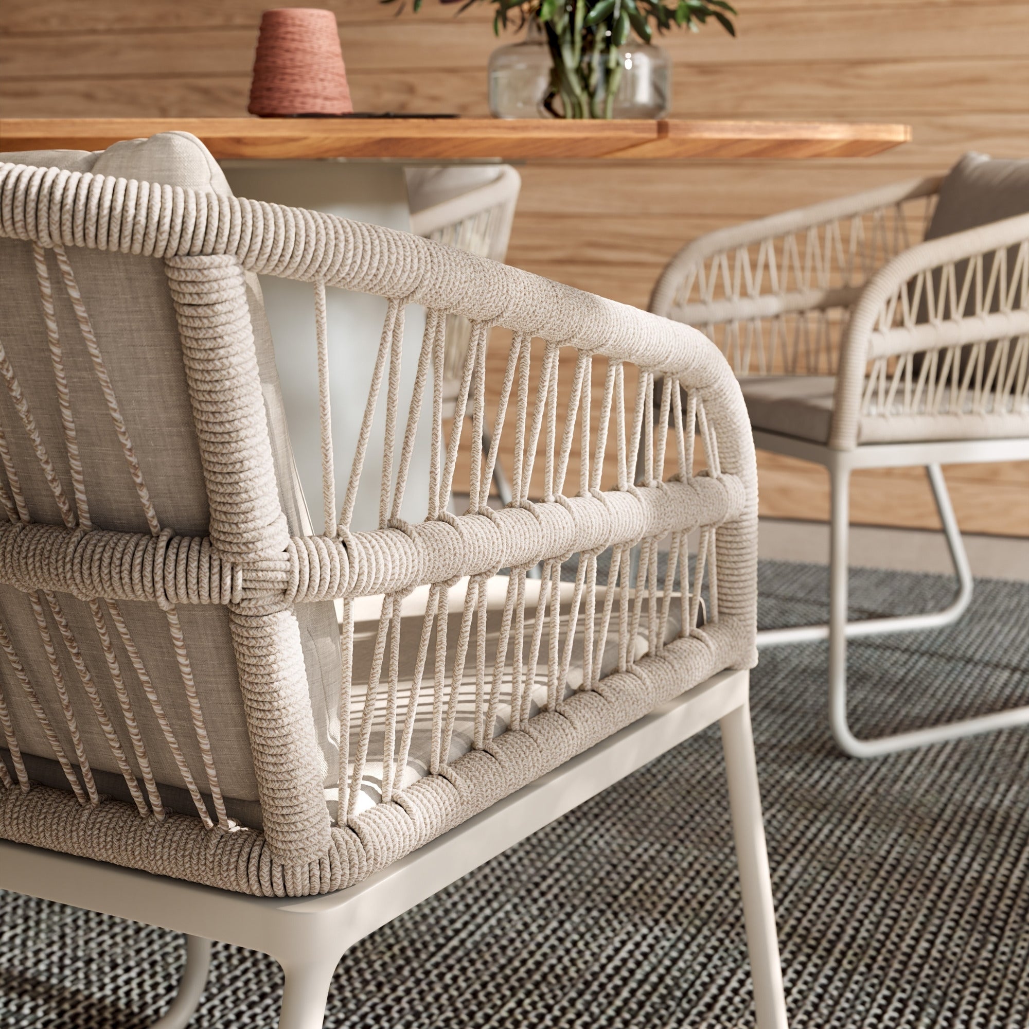 - Sommerlich-leichtes Flair: Das moderne Seil-/Rope-Design verleiht den Outdoor-Stühlen eine luftige Optik, die stilvoll und entspannt wirkt.