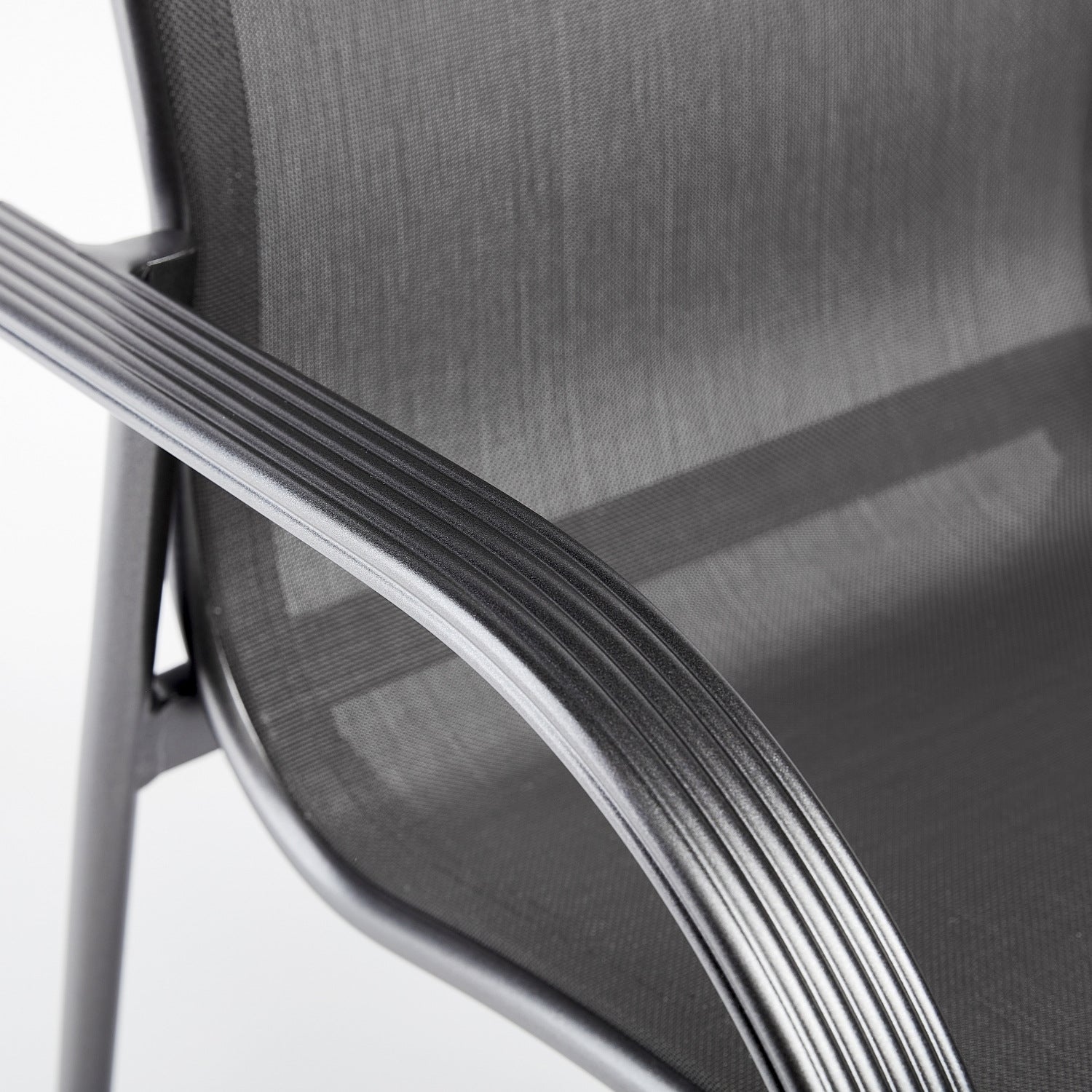 - Robuste Armlehnen: Die Armlehnen bestehen ebenfalls aus Aluminium und tragen zur Langlebigkeit der Möbel bei.