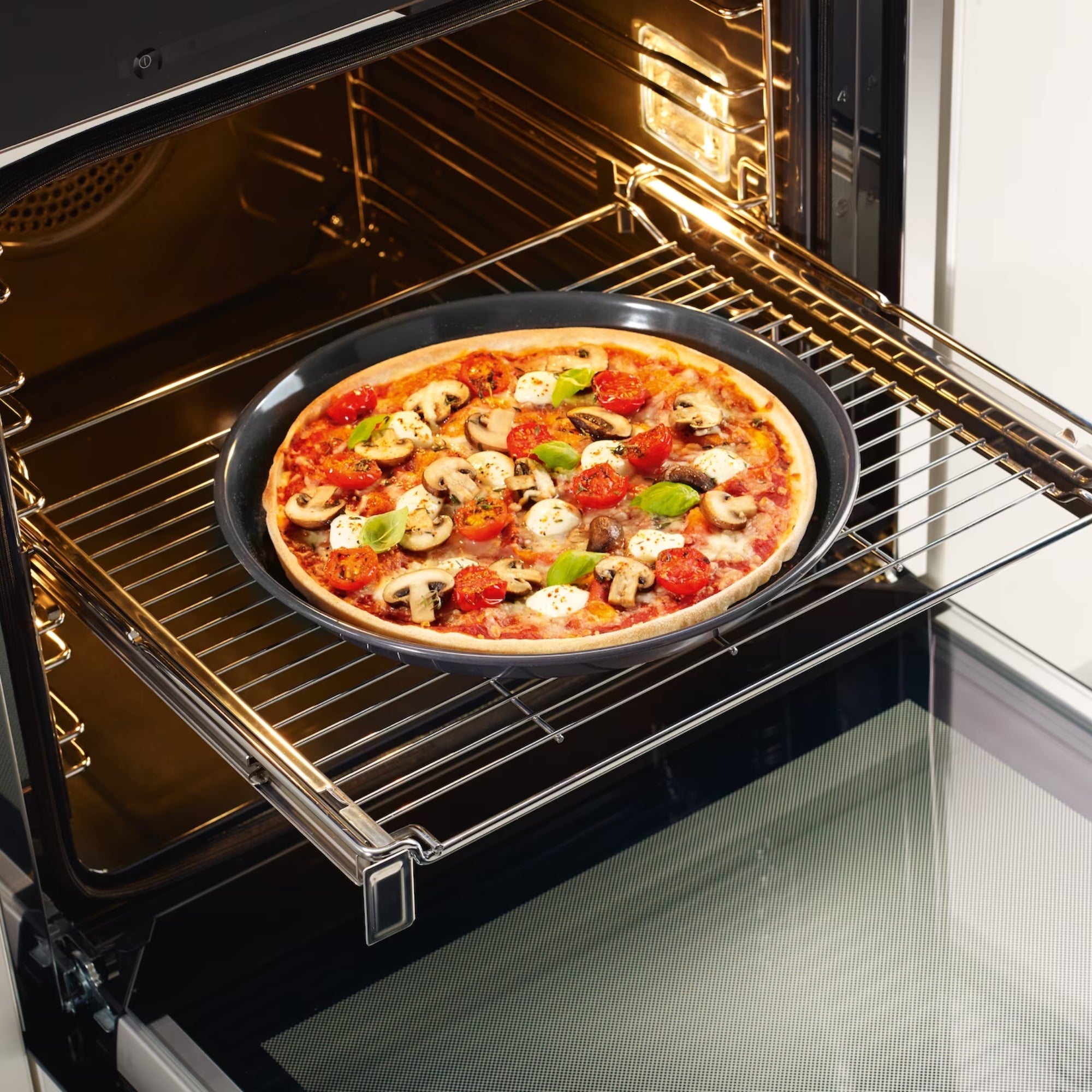 Die Miele Runde Backform mit einem Durchmesser von 27 cm ist der ideale Helfer für Backliebhaber. Mit ihrer innovativen PerfectClean Veredelung verhindert sie das Anhaften von Teig und Belägen – ganz ohne Backpapier oder Einfetten. Die Form eignet sich perfekt für Pizzen, Quiches, Tartes und vieles mehr. Dank ihrer schnittfesten Oberfläche können Sie Ihre Kreationen direkt in der Form schneiden, ohne dabei Schäden befürchten zu müssen. Und nach dem Backen? Die besonders leichte Reinigung macht Schluss mit langwierigem Schrubben, sodass Sie mehr Zeit für das Genießen Ihrer Speisen haben.