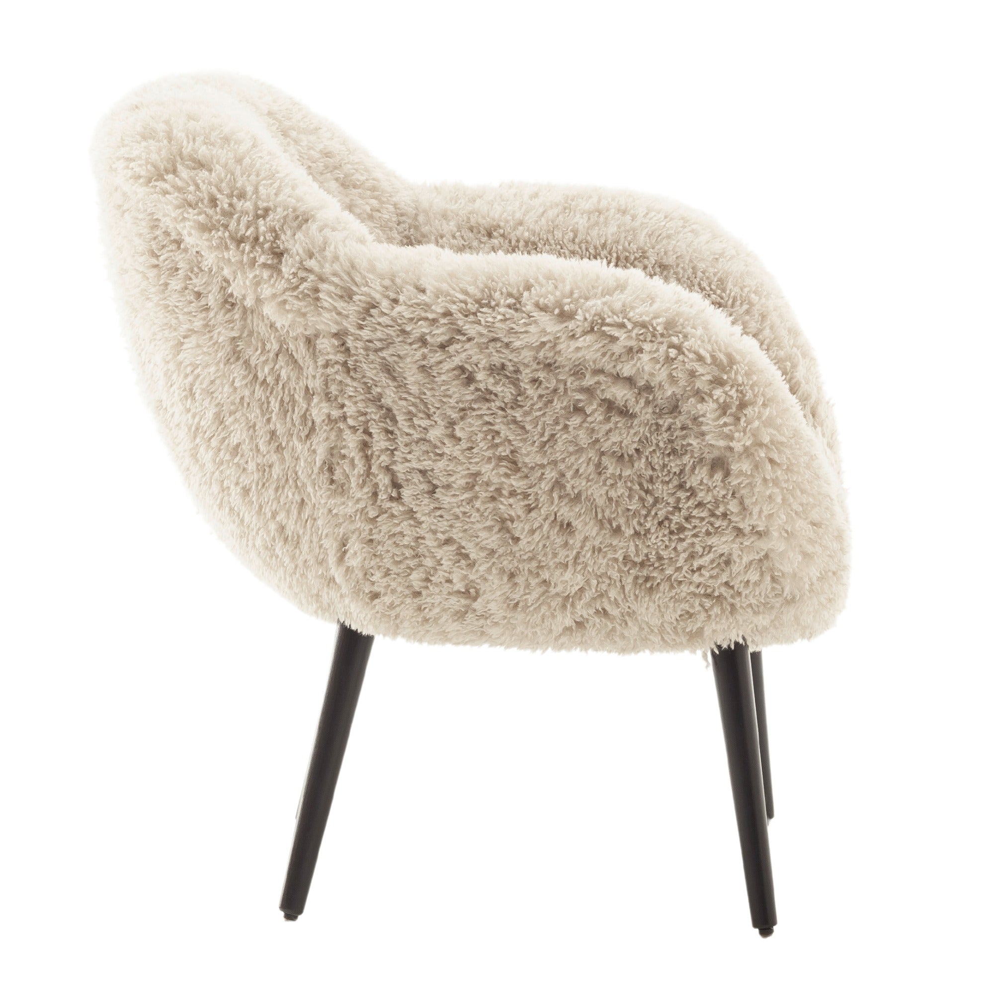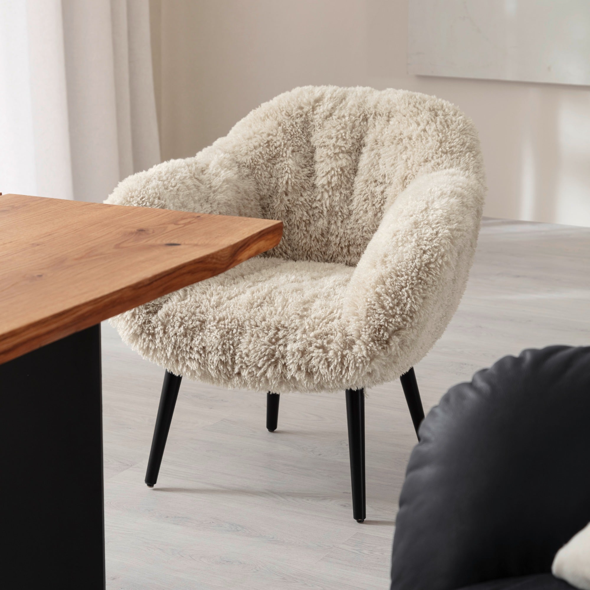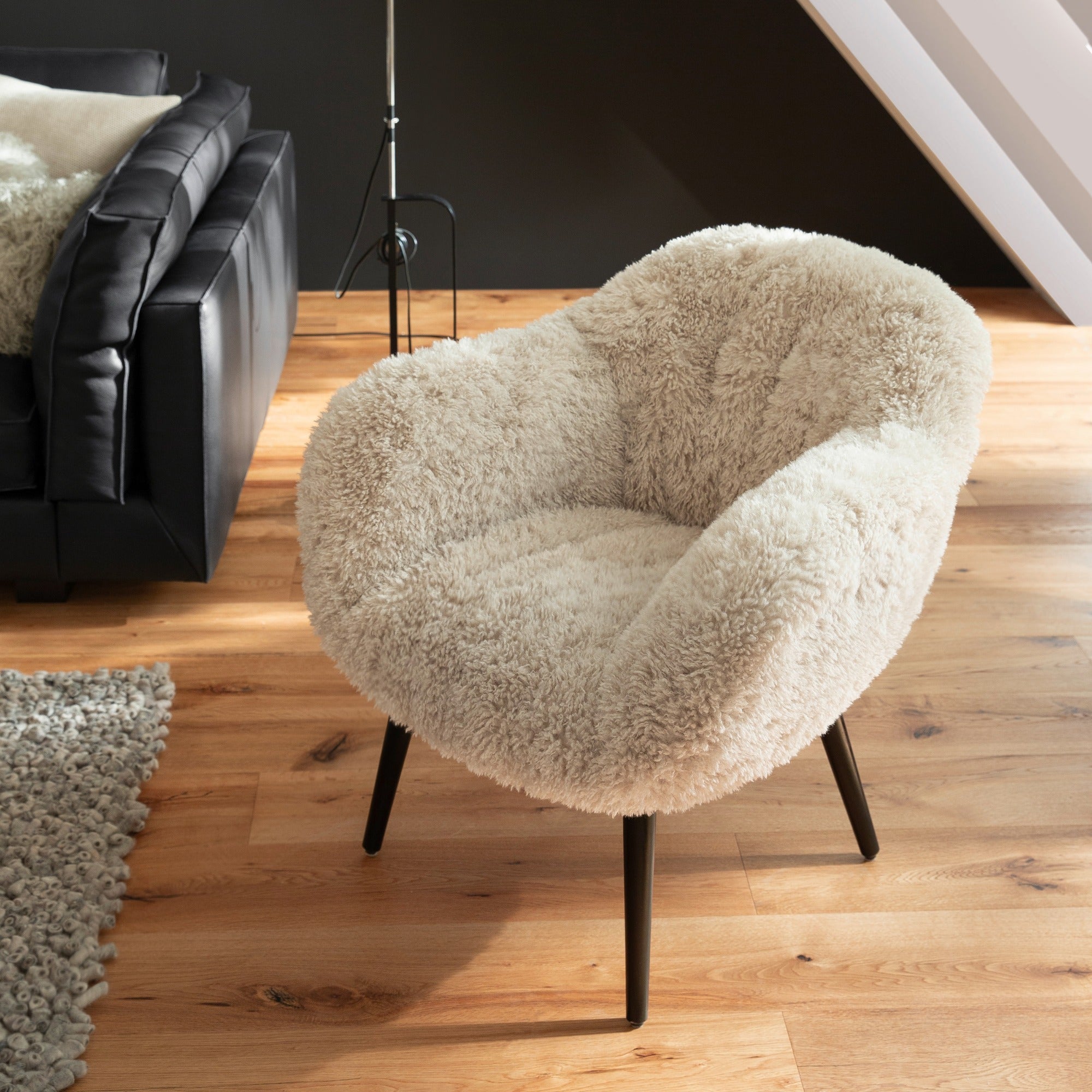 Der Sessel Sevano von Contur einrichten kombiniert herausragenden Komfort mit einem stilvollen Design, das in jedes Zuhause passt. Mit seiner angenehmen Sitzhöhe von ca. 43 cm und der legeren Polsterung aus hochwertigem Kaltschaum bietet er optimalen Sitzkomfort und überzeugt durch seine Langlebigkeit. Die elegant lackierten Füße aus massivem Buchenholz in Schwarz verleihen dem Sessel eine stabile Basis sowie ein zeitloses, modernes Erscheinungsbild. Der cremefarbene Kunstfellbezug sorgt für einen natürlichen Look und ein gemütliches Ambiente. Das robuste Metalluntergestell unterstreicht die hochwertige Verarbeitung und Langlebigkeit des Sessels.