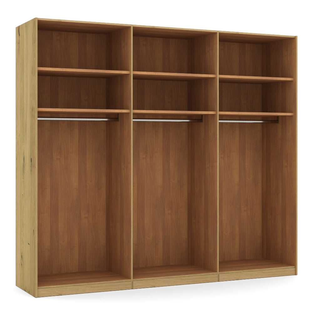 Dieser Schiebetürenschrank besticht nicht nur durch sein ästhetisches Design, sondern auch durch seine durchdachte Funktionalität. Mit drei großzügigen Schwebetüren bietet er nicht nur jede Menge Stauraum, sondern spart durch sein raumsparendes Öffnungssystem auch Platz in kleineren Räumen. Der Schrank beinhaltet zwei Einlegeböden und eine Kleiderstange je Fach mit einer komfortablen Innentiefe von 56 cm, perfekt geeignet für die optimale Organisation Ihrer Garderobe. Die fein eingearbeitete Chromleiste in den Türen rundet das edle Design ab.