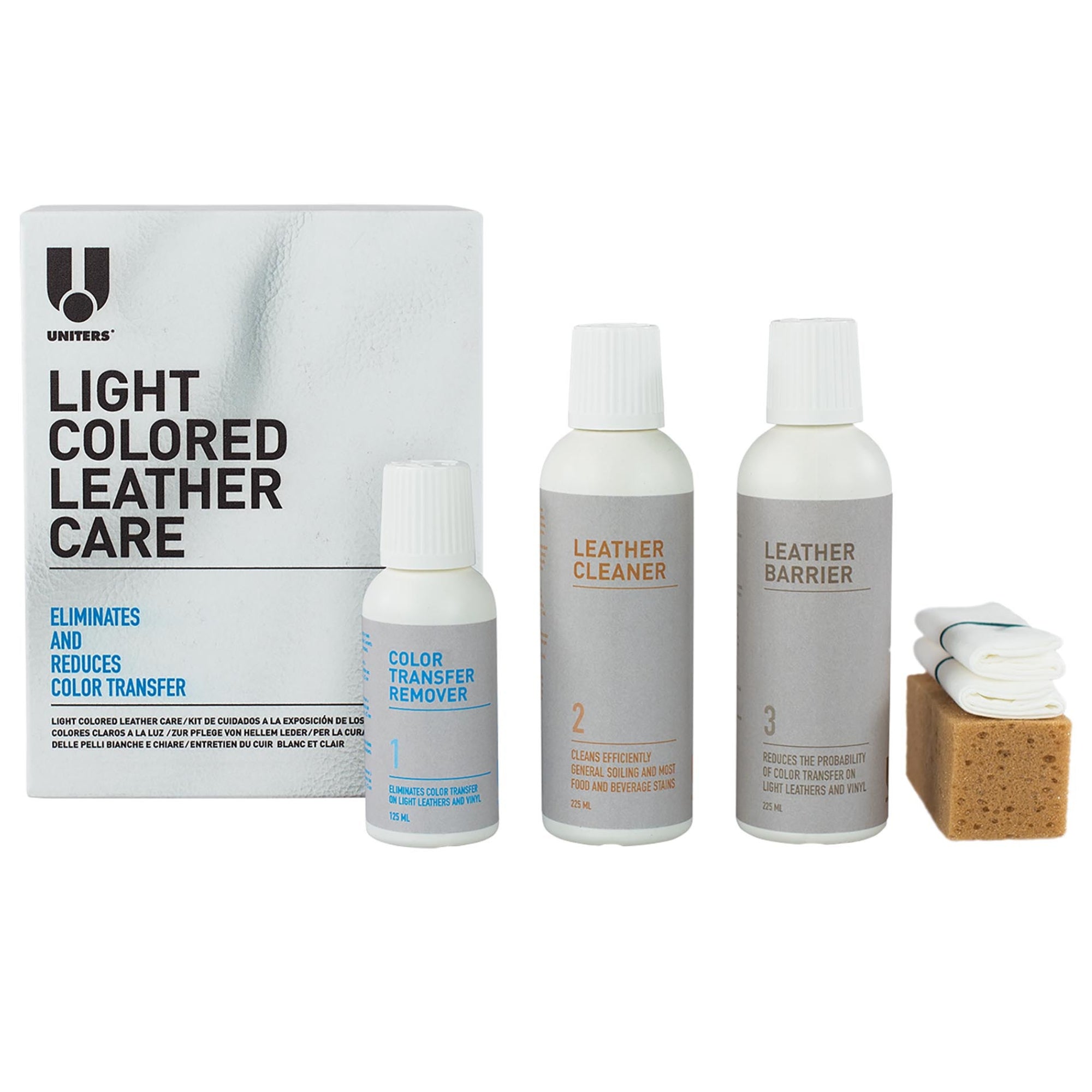 Der Color Transfer Remover und Leather Cleaner entfernen Farbspuren von der Oberfläche und dem Finish des Leders, einschließlich Übertragungen von Jeans, Zeitungsdrucken, Kugelschreiber, Schuhcreme, Make-Up, Kaugummi und Permanentmarkern. Das Kit kann auch allgemeine Verschmutzungen und die meisten Flecken von Lebensmitteln und Getränken effektiv reinigen.