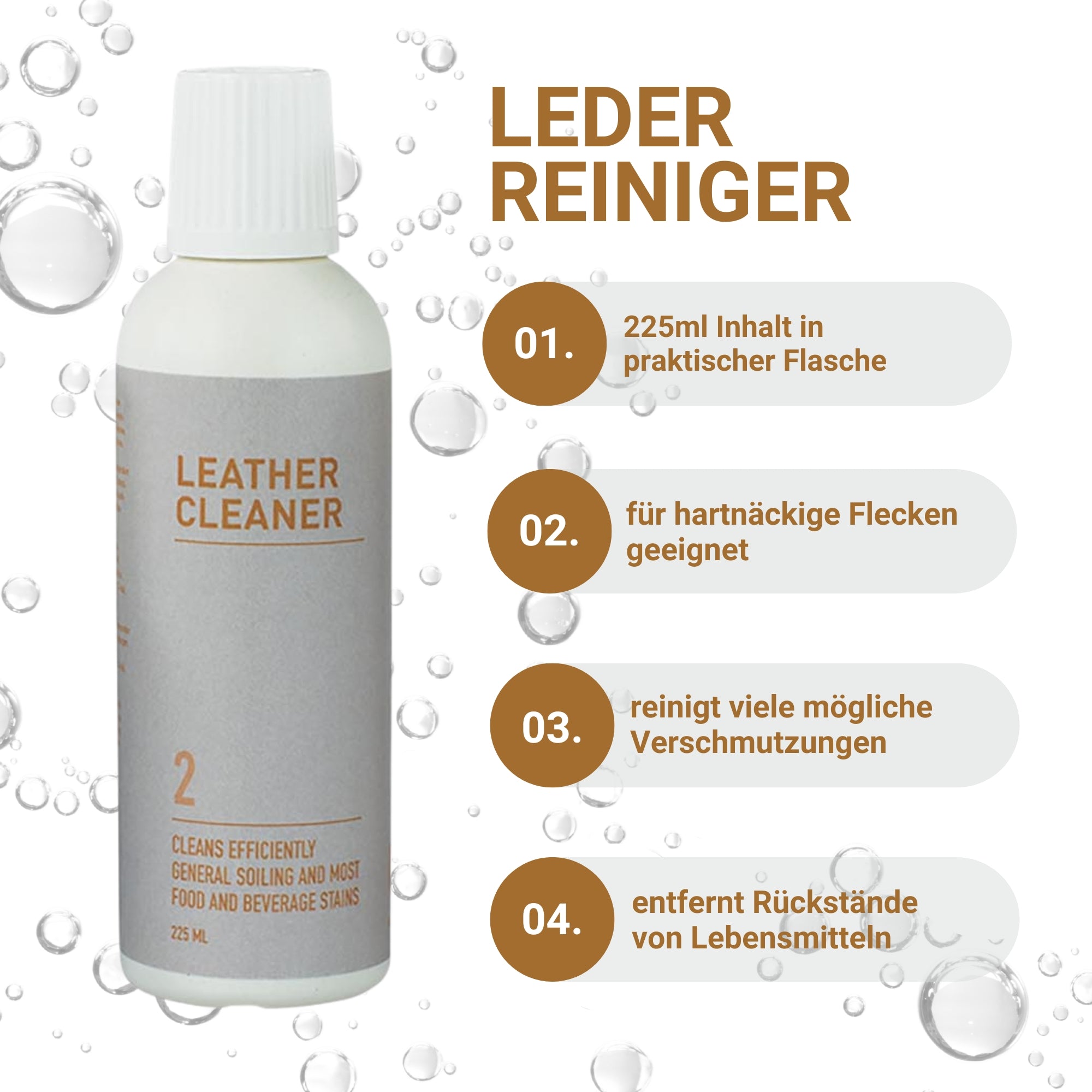 Beseitigen Sie unerwünschte Farbübertragungen von Jeans, Kissen, Zeitungen uvm. auf hellem Leder und reduzieren Sie zukünftige Farbstofftransfers. Unser Lederpflege-Kit ist geeignet für alle hellen Vinyl- und Lederoberflächen außer Nubuk und Wildleder. Es ist besonders effizient für weiße und helle Leder von Himolla Sitzmöbeln.