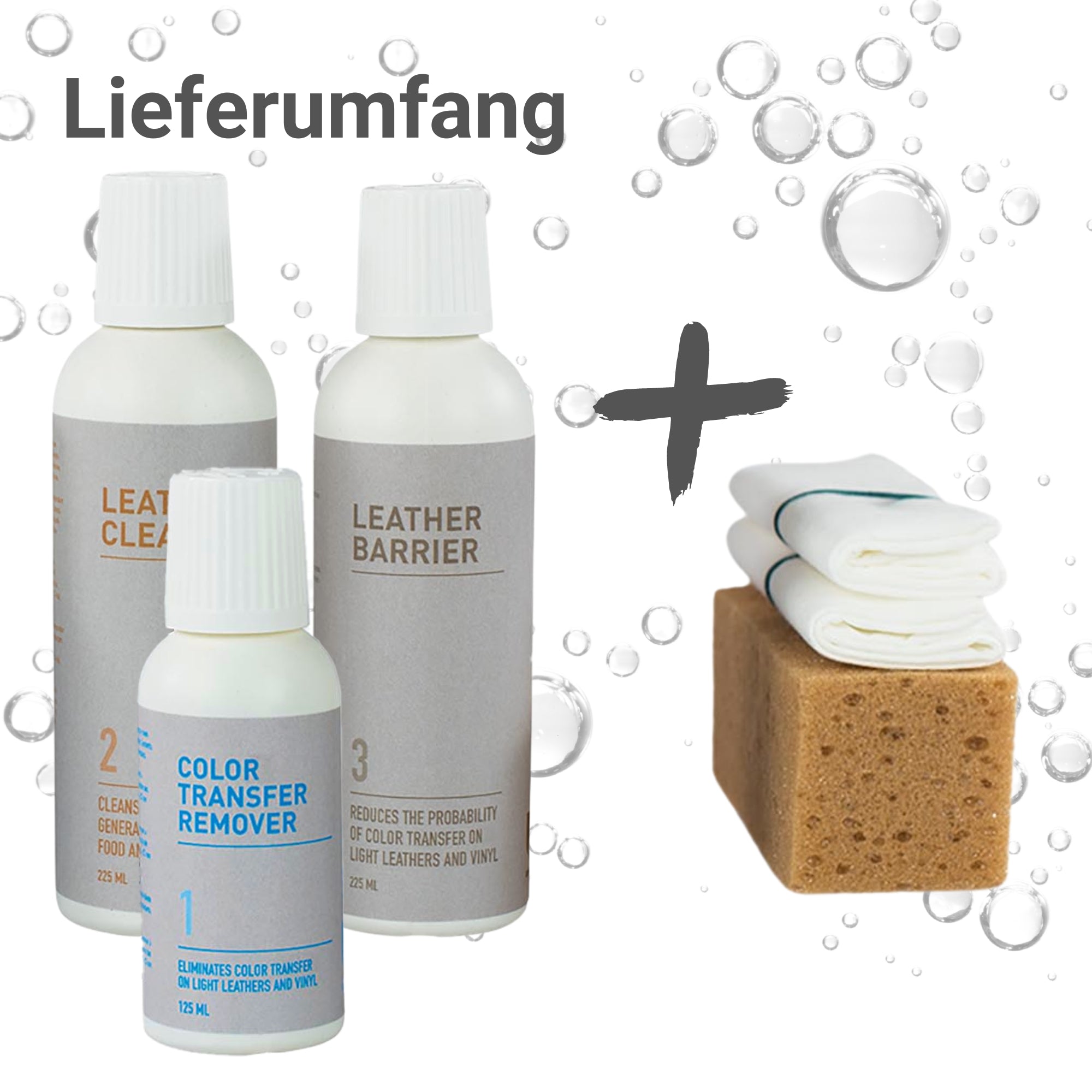 Lederpflege-Set, Himolla Light Colored Leather Care, 3-Schritte Lederreinigung & Pflege inkl. Reinigungsschwamm & Tuch, für helle Leder & Vinyl