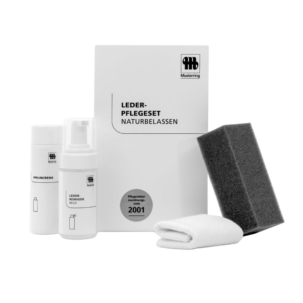 Ihr hochwertiges Anilinleder verdient die beste Pflege. Das Musterring Lederpflegeset naturbelassen bietet Ihnen eine durchdachte Komplettlösung, die Ihre Ledermöbel nicht nur reinigt, sondern auch dauerhaft vor Verschmutzungen und vorzeitigem Verschleiß schützt.