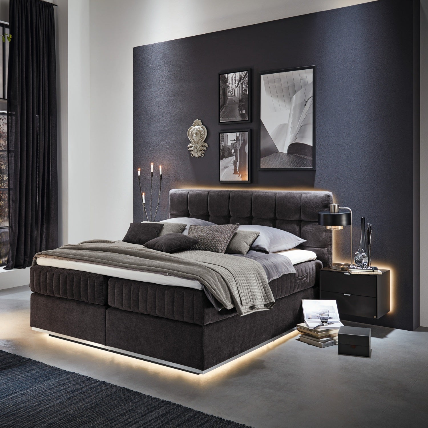 Musterring Boxspringbett Felina Fly 180 x 200 cm, mit Stoffbezug + LED Beleuchtung, D040 Anthrazit