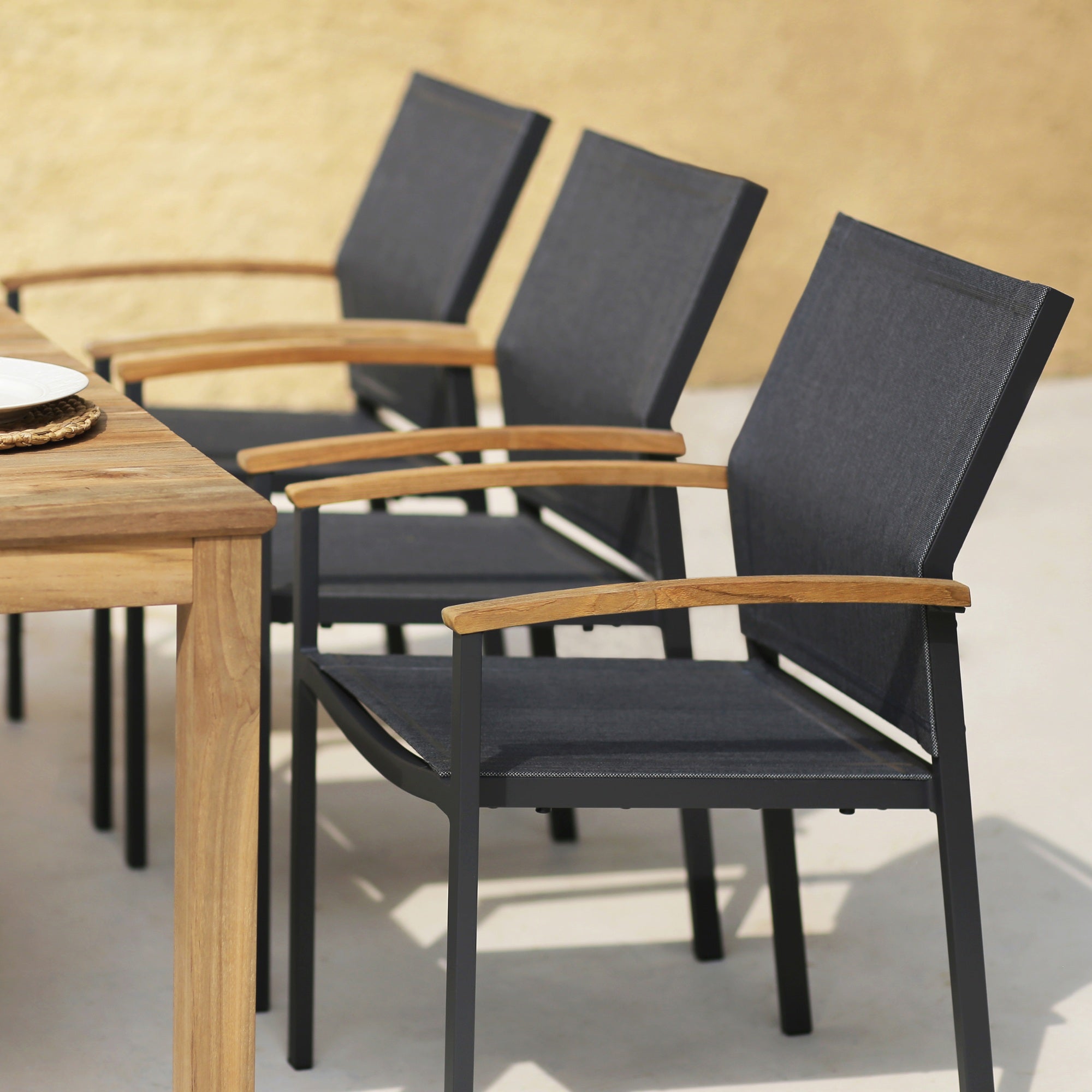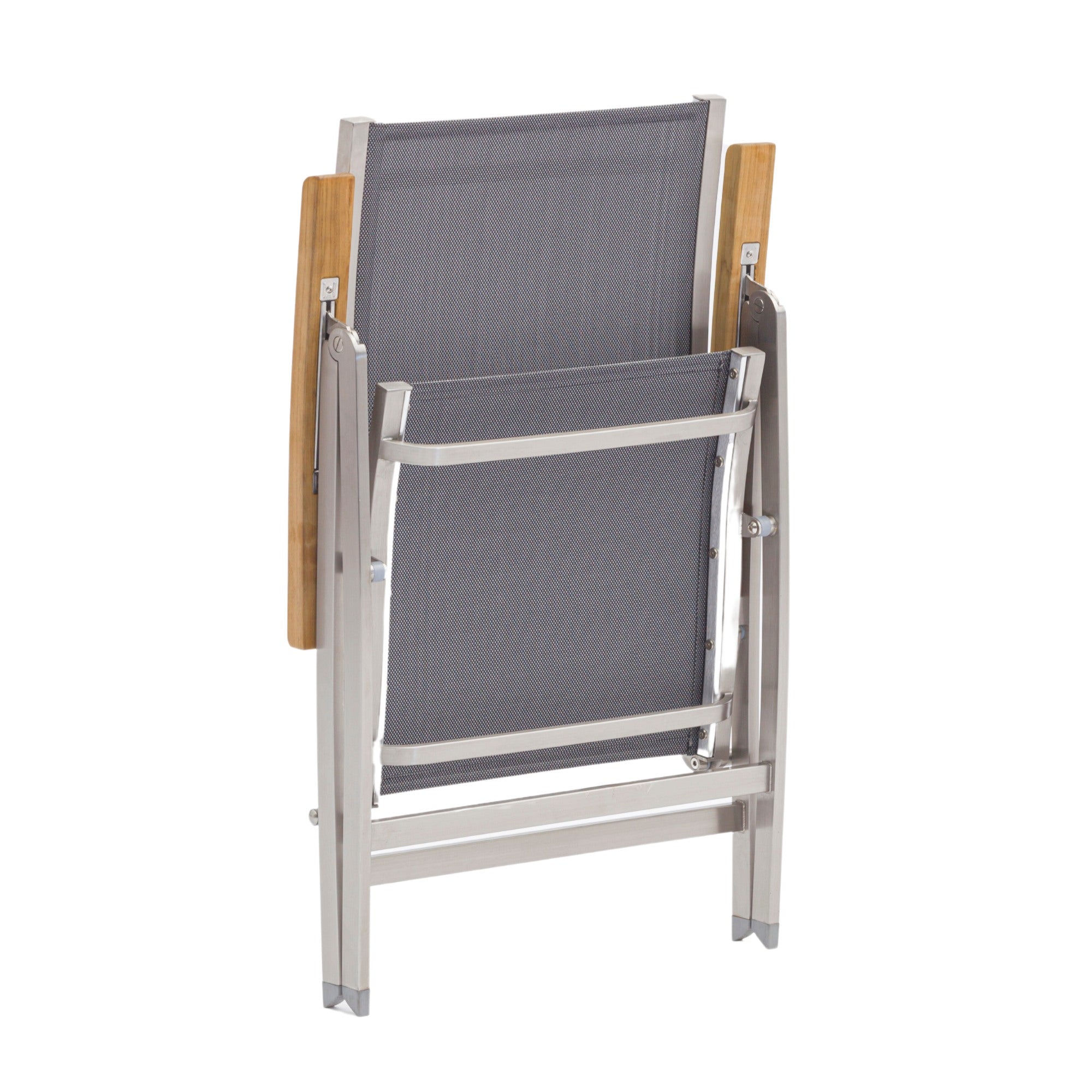 Die One-Serie ist eine hochwertige Kollektion mit modernem, minimalistischem Design. Sie bietet langlebige Edelstahlgestelle, UV-beständige Textile-Bespannung und Teakholz-Armlehnen. Die Serie umfasst Stapel- und Klappsessel, Hocker, Stapelbänke und eine verstellbare Liege. Besondere Merkmale sind ergonomische Rückenlehnen, wetterfeste Materialien, platzsparende Designs und eine filigrane, stabile Optik. Ideal für moderne Terrassen und Gärten, überzeugen die Möbel durch Funktionalität, Komfort und Pflegeleichtigkeit.