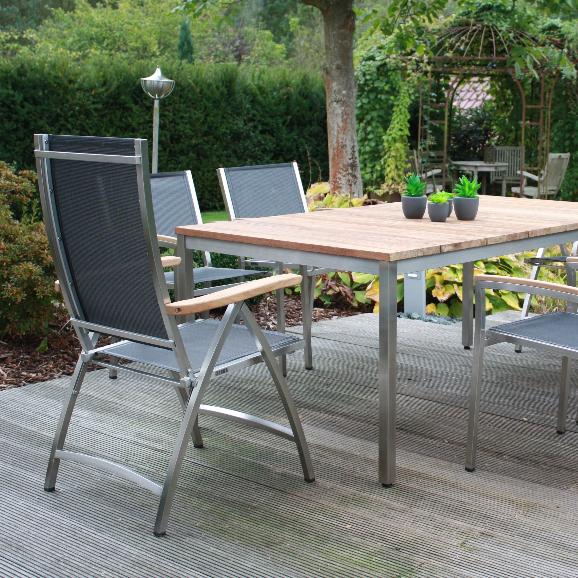 Die Greenline-Serie von ZEBRA steht für hochwertige Gartenmöbel, die Nachhaltigkeit und zeitloses Design vereinen. Diese exklusive Kollektion kombiniert recyceltes Teakholz mit massivem Edelstahl und bietet umweltfreundliche, langlebige Möbel für Garten und Terrasse.
