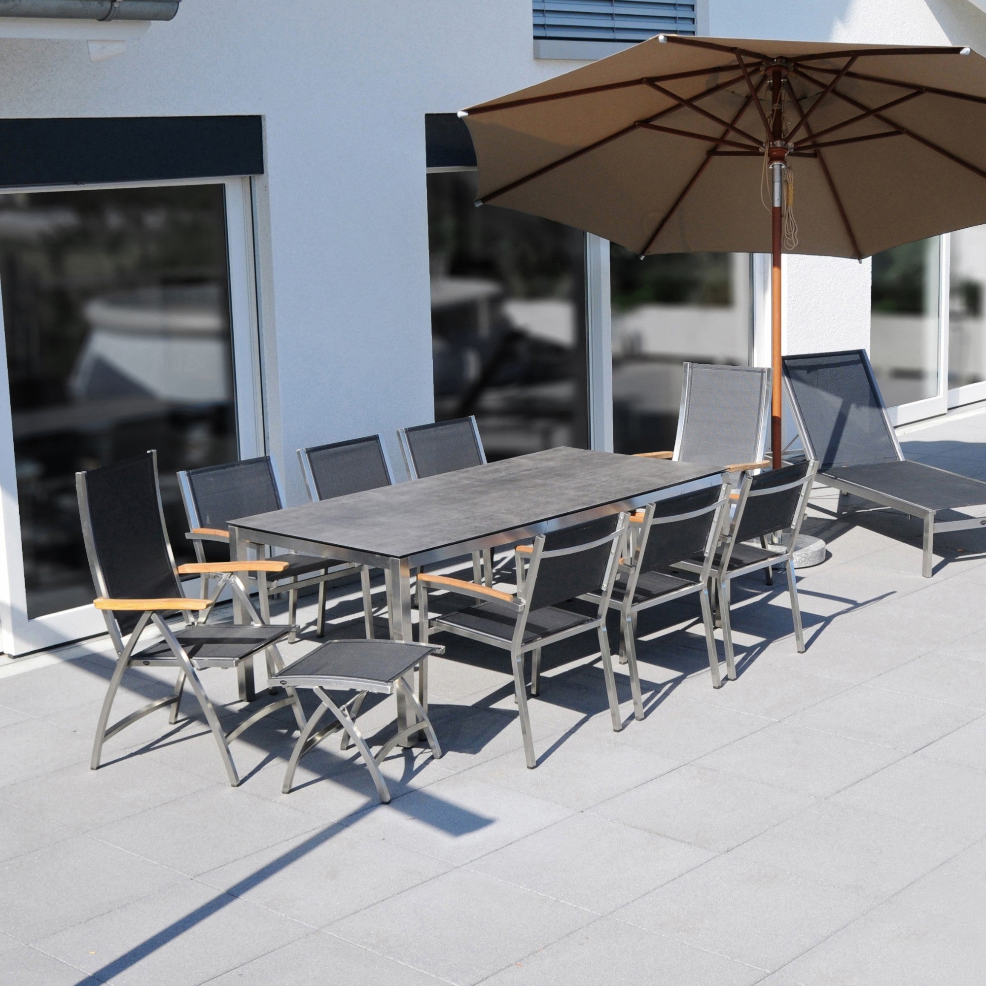 - Edelstahl und Aluminium für stabile, pflegeleichte Konstruktionen.