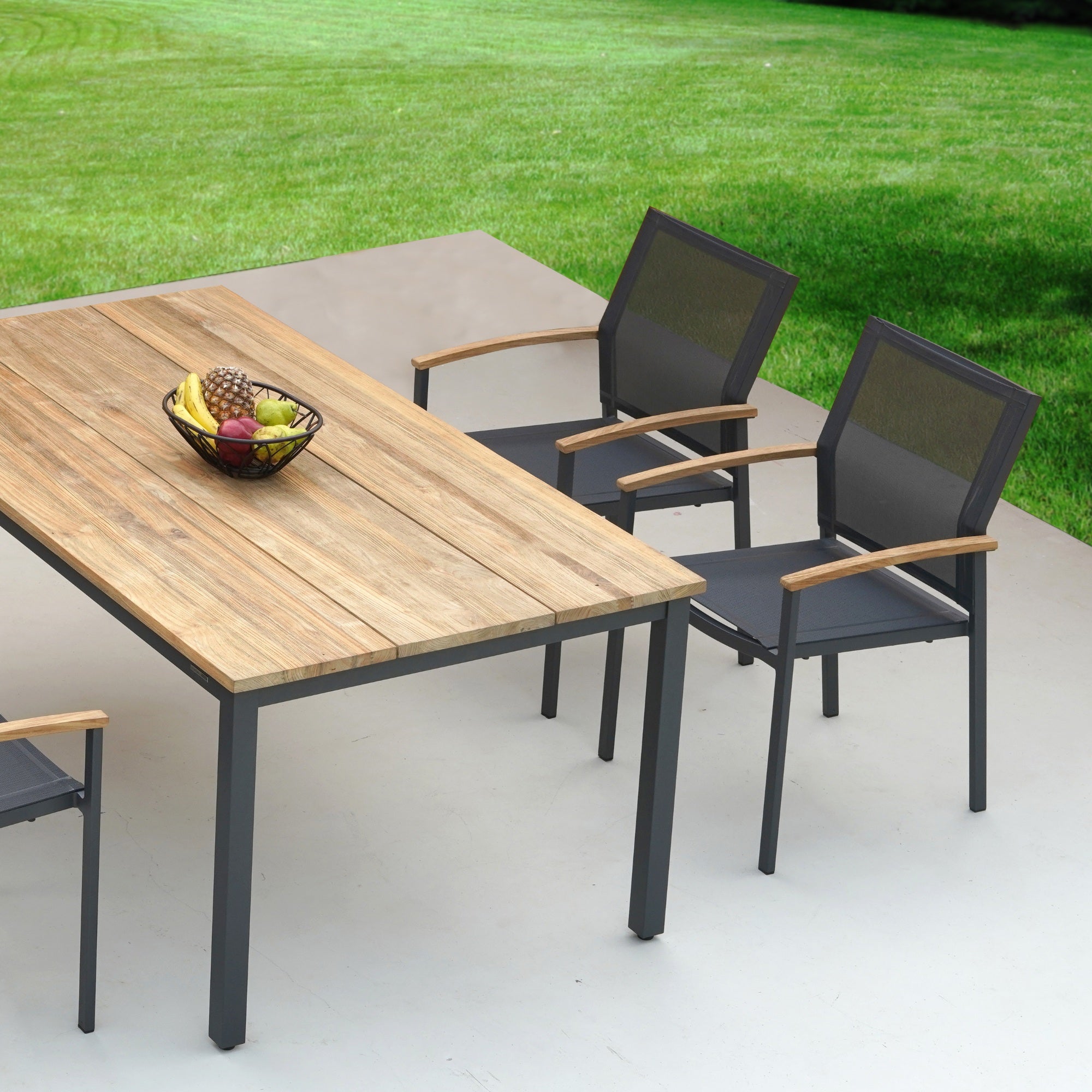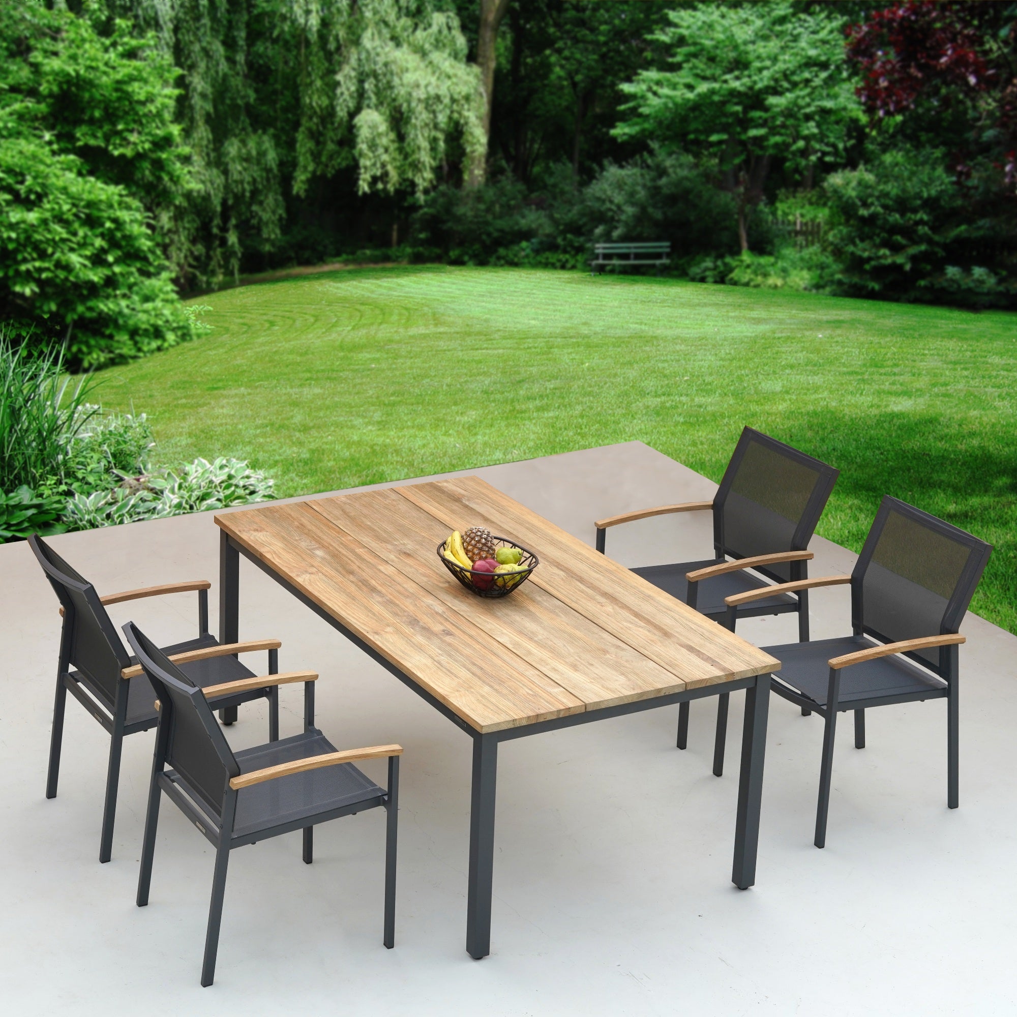 - Erstklassiges Material wie Edelstahl, Aluminium und recyceltes Teakholz.