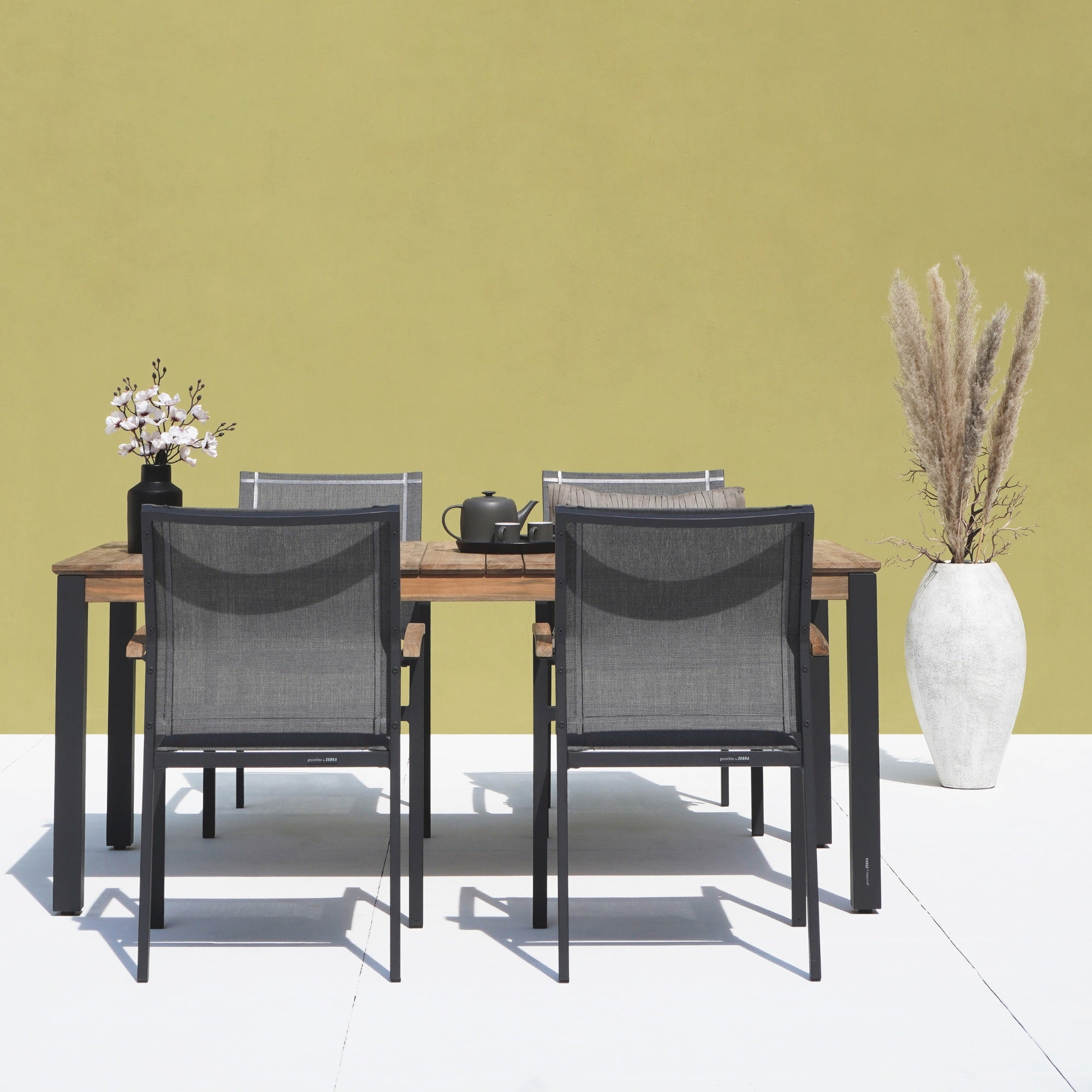 Die Greenline-Serie spiegelt ZEBRAs Engagement für Umweltbewusstsein und Qualität wider. Der Materialmix aus recyceltem Teakholz und Edelstahl macht die Möbel robust und langlebig – perfekt für alle, die Wert auf Stil und nachhaltige Ressourcen legen.