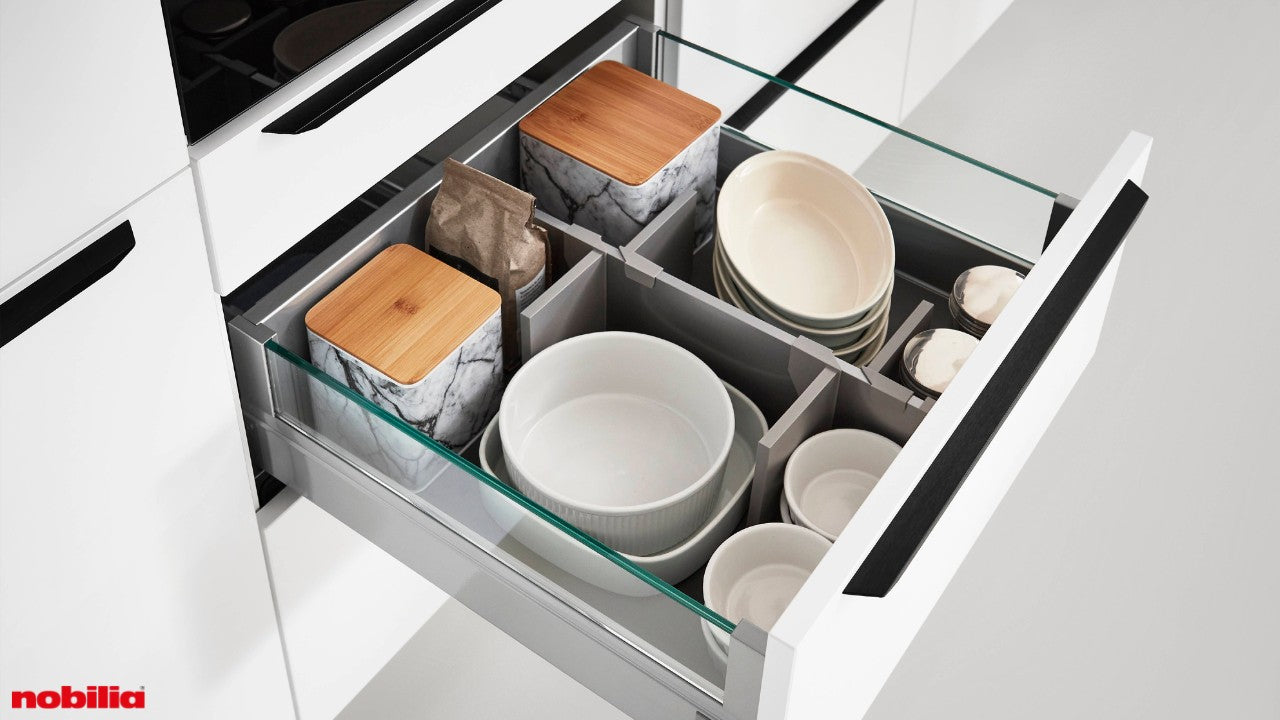 Gut durchdachte Schrankaufteilungen, Schubladensysteme und ausziehbare Regale sorgen für Ordnung und Übersichtlichkeit. Diese Lösungen maximieren den Stauraum und machen es einfach, alles in Reichweite zu haben.