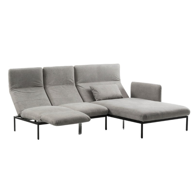 Die beiden Sitze lassen sich unabhängig um 90 Grad drehen, während Rücken- und Armlehnen stufenlos verstellbar sind. So entsteht im Handumdrehen eine komfortable Relaxliege oder Schlafgelegenheit mit einer Liegefläche bis zu 133 x 200 cm. Durch die variable Einstellbarkeit kann das Sofa perfekt an persönliche Komfortbedürfnisse angepasst werden – ideal für flexible Wohnkonzepte.