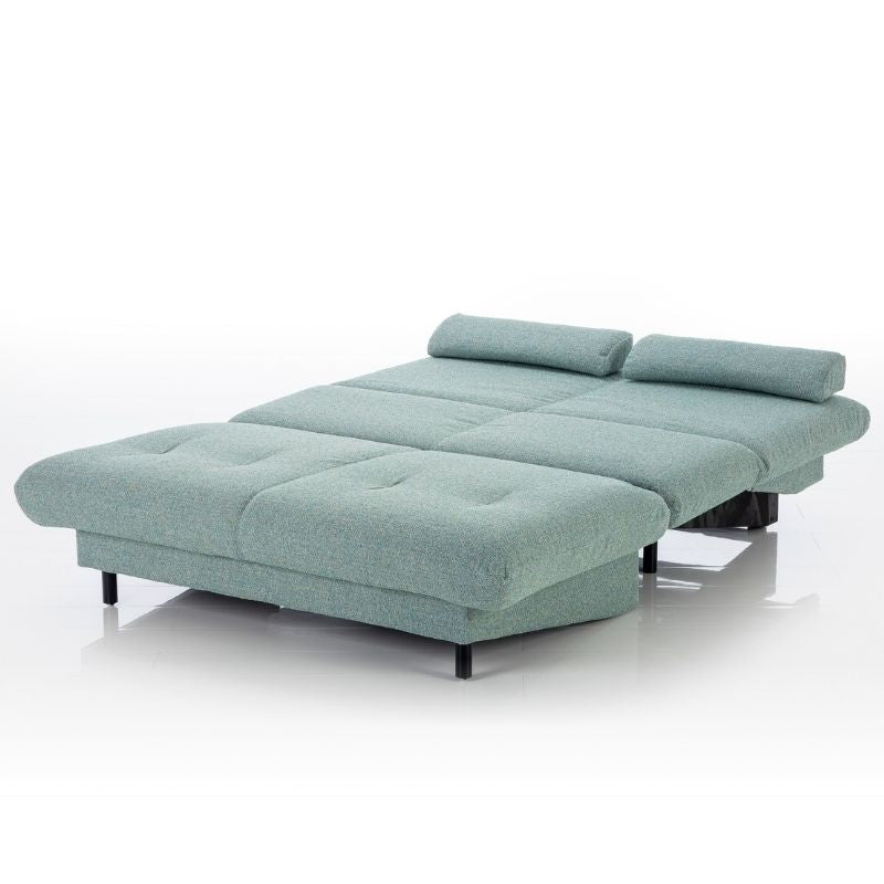 Die durchdachte Konstruktion sorgt für bequemes Sitzen und entspanntes Liegen: Der Sitz ist mit Wellenfederunterfederung ausgestattet, während der Rücken über eine Lattenrostunterfederung verfügt. Die Polsterung besteht aus langlebigem Polyurethanschaum, der gleichzeitig stützend und angenehm weich ist. Zwei passende Rückenkissen (68 x 18 cm) sind bereits im Lieferumfang enthalten.