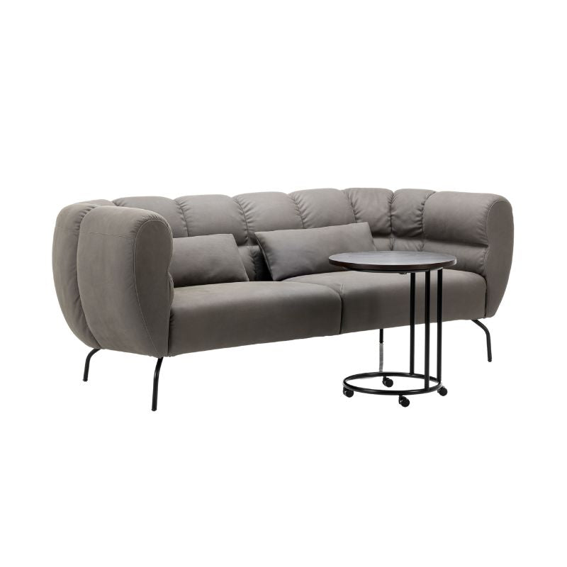 Die Bezüge sind vollständig abziehbar und erneuerbar, was Pflege und Umgestaltung besonders einfach macht. Sowohl Stoff- als auch Lederbezüge stehen in zahlreichen Farben und Strukturen zur Auswahl und ermöglichen eine individuelle Gestaltung. Die Füße sind wahlweise aus Holz oder Metall (standardmäßig schwarz pulverbeschichtet) erhältlich, wodurch sich das Sofa mühelos an unterschiedliche Einrichtungsstile anpasst.