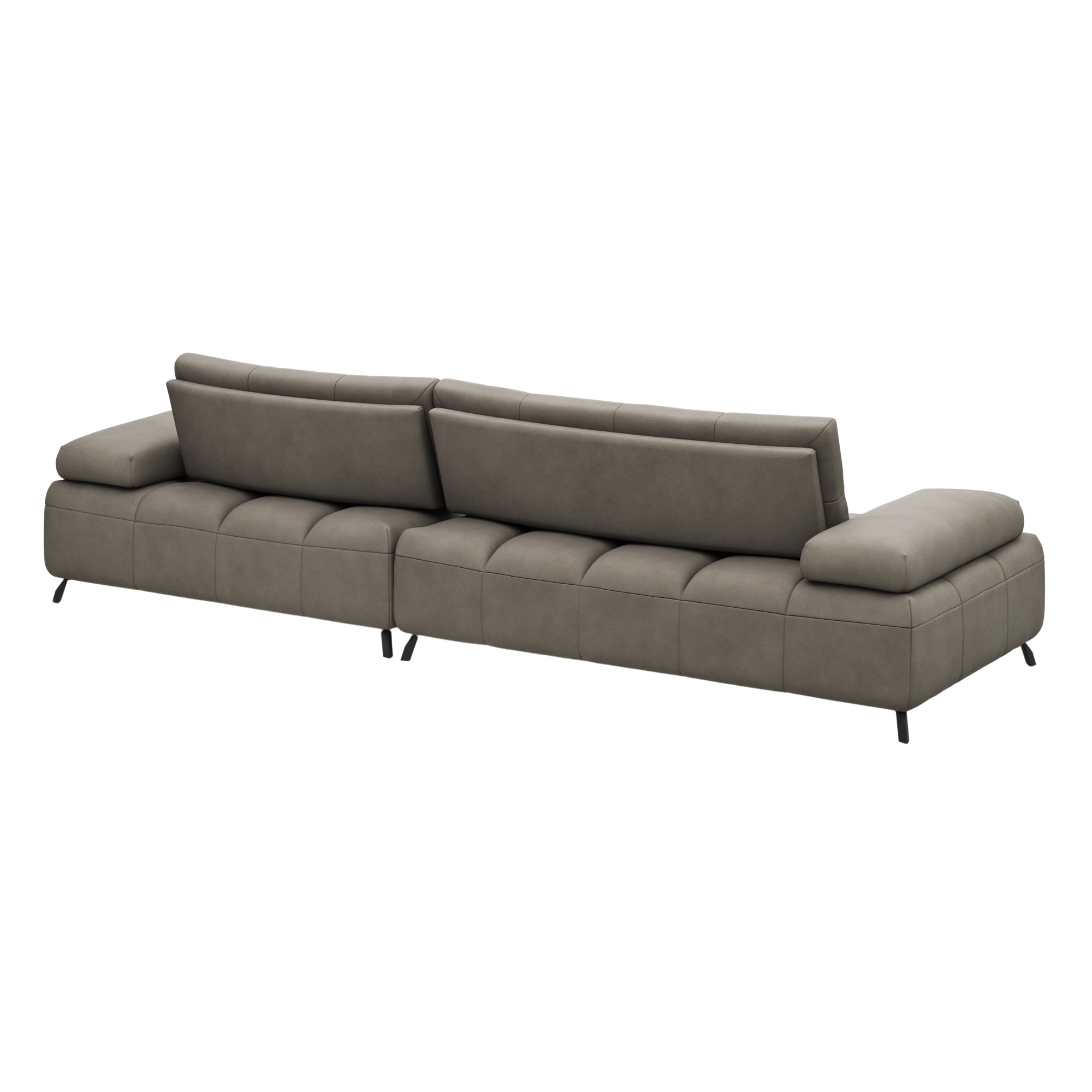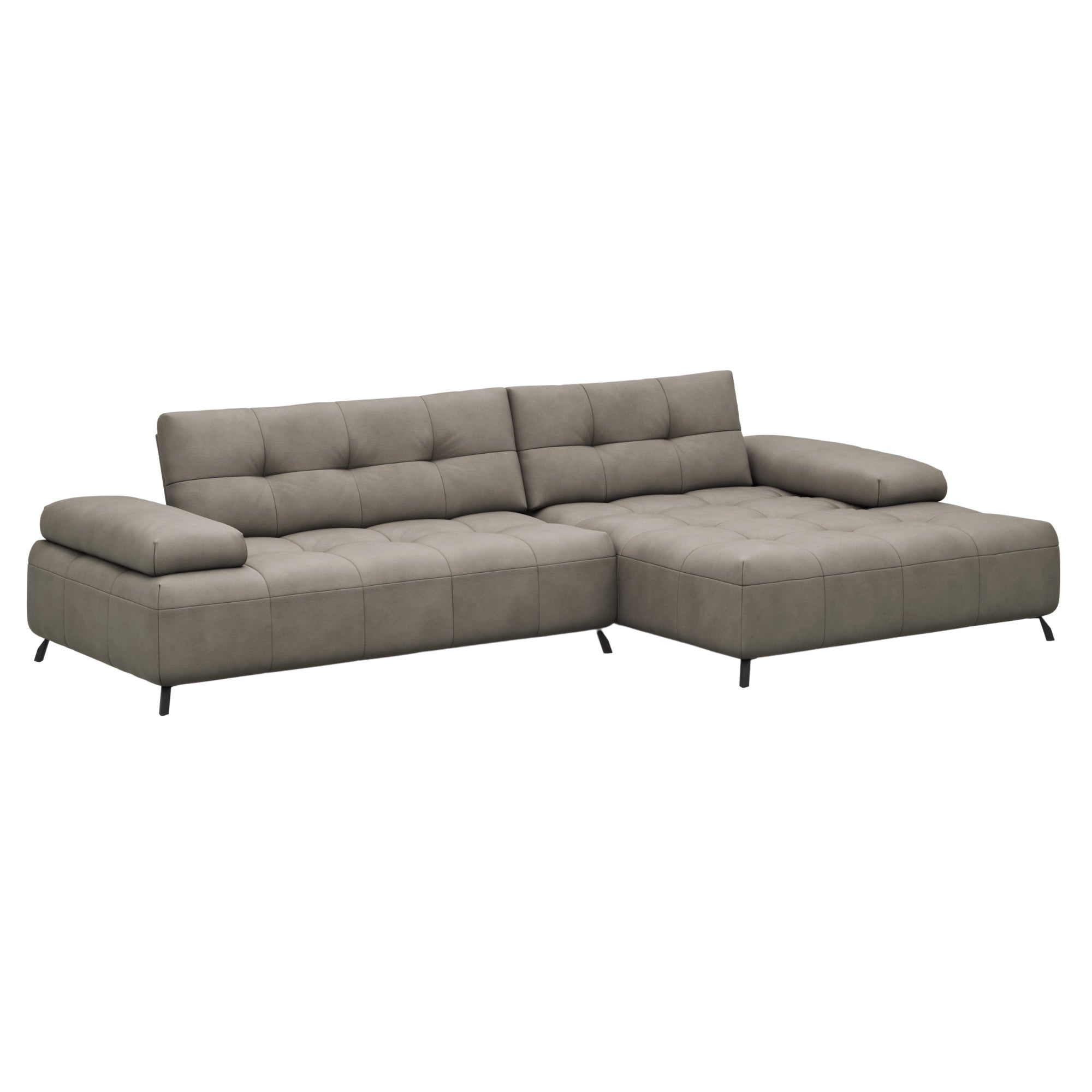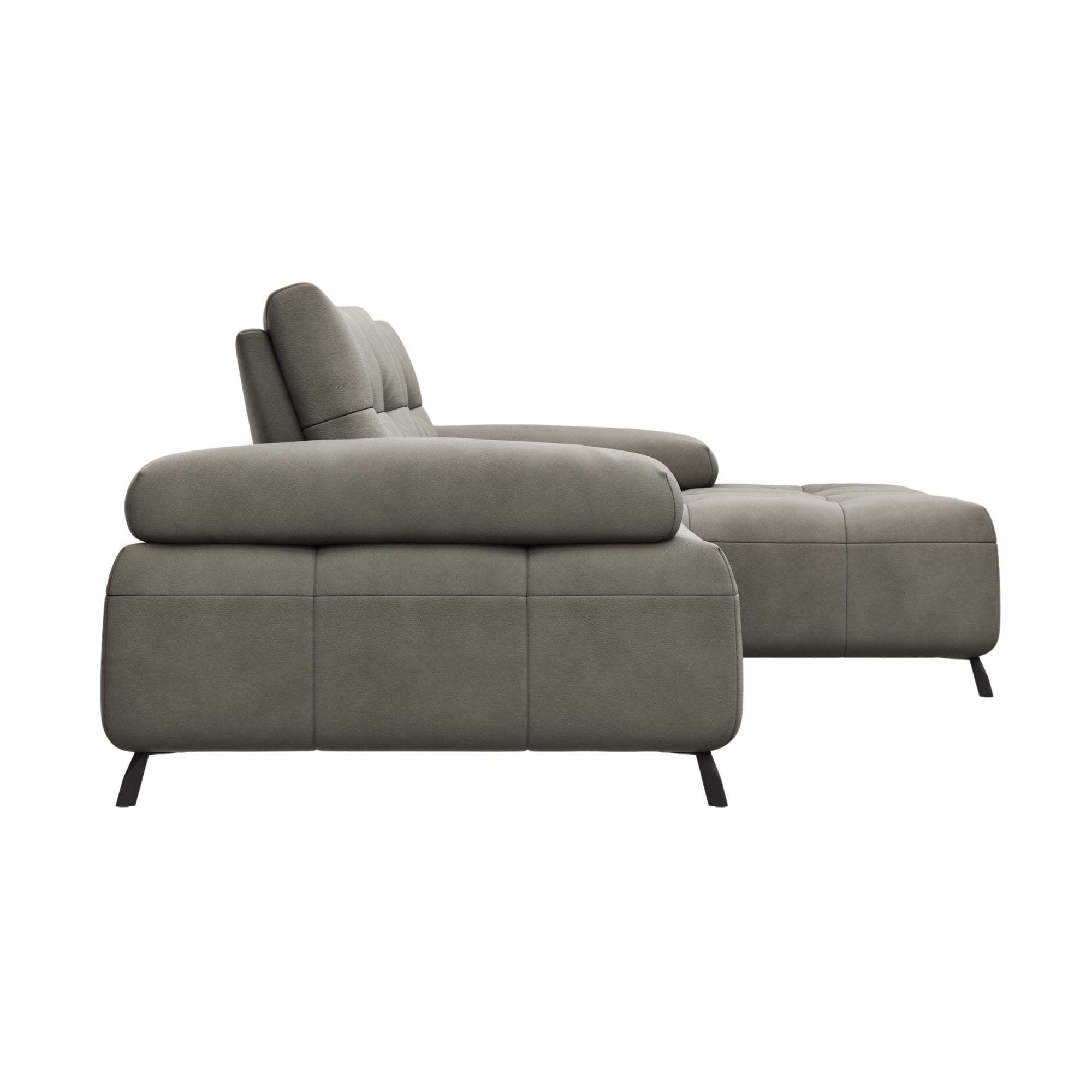 Dieses Ecksofa ist ein 2-Sitzer mit Longchair auf der rechten Seite, bezogen in hochwertigem Leder in der eleganten Farbe Taupe. Es bietet Ihnen nicht nur einen Platz zum Sitzen, sondern einen Ort, an dem Sie sich wirklich entspannen können. Dank der integrierten Sitztiefenverstellung passt sich das Sofa Ihren individuellen Bedürfnissen an und ermöglicht Ihnen, die perfekte Sitzposition zu finden – ob beim Lesen, Fernsehen oder einfach nur beim Entspannen.
