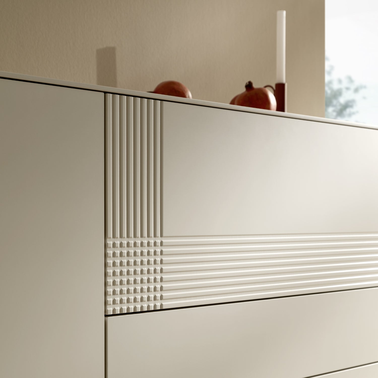 Das Möbelstück zeichnet sich durch seine klare Linienführung und die grifflosen Fronten aus, die mit einer praktischen Push-to-Open-Funktion ausgestattet sind. Diese sorgt für eine nahtlose und moderne Optik, während die innovative Technik das Öffnen und Schließen der Türen, Klappen und Schubladen besonders komfortabel macht. Eine integrierte Dämpfung gewährleistet ein geräuschloses und sanftes Schließen aller Elemente, was den hochwertigen Charakter des Sideboards unterstreicht.