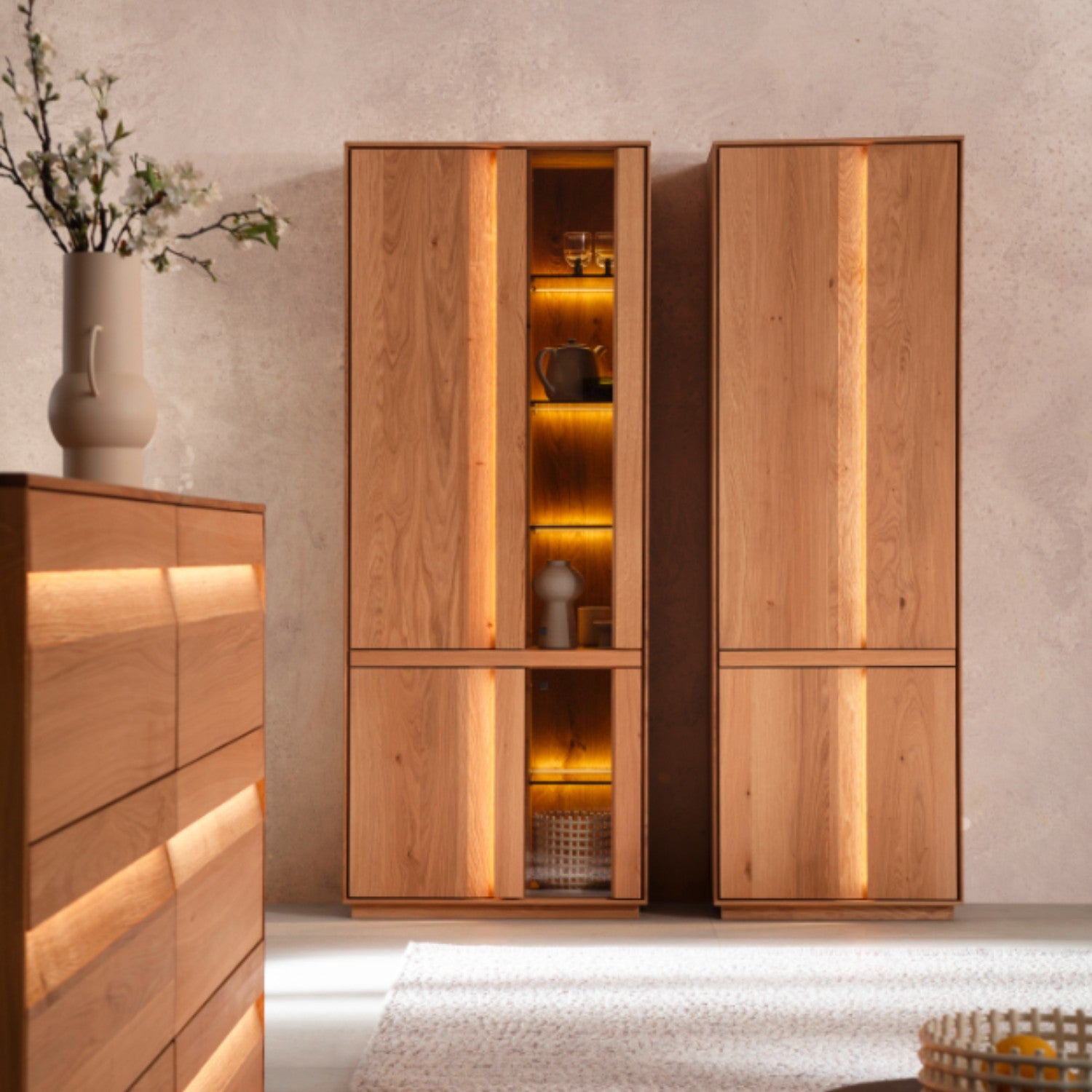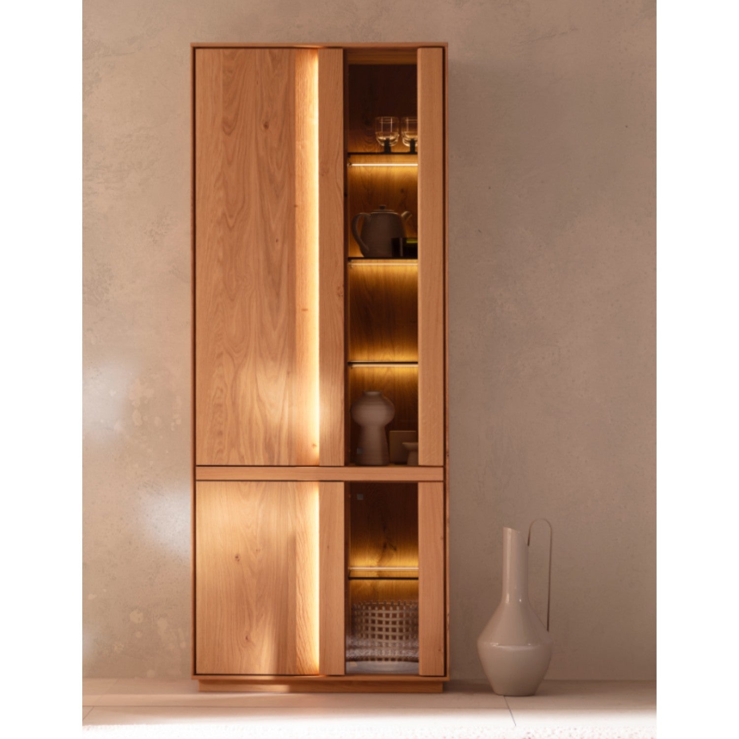 Contur Vitrine Due Viso inkl. Beleuchtung, Wildeiche massiv, geölt