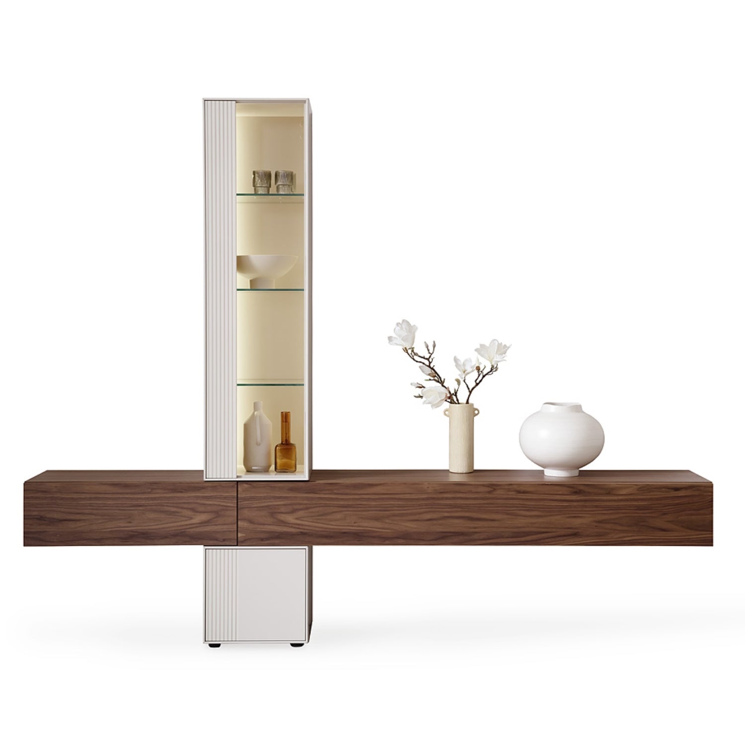 Contur Wohnwand Colore inkl. Beleuchtung, Lack Kaschmir & Nussbaum