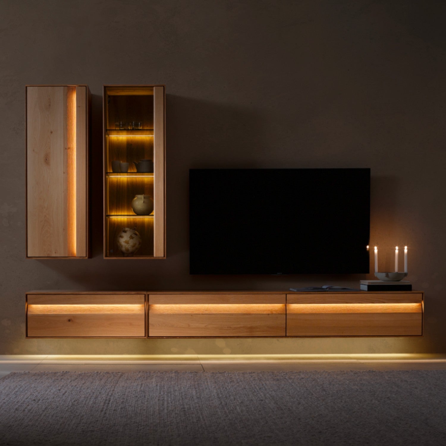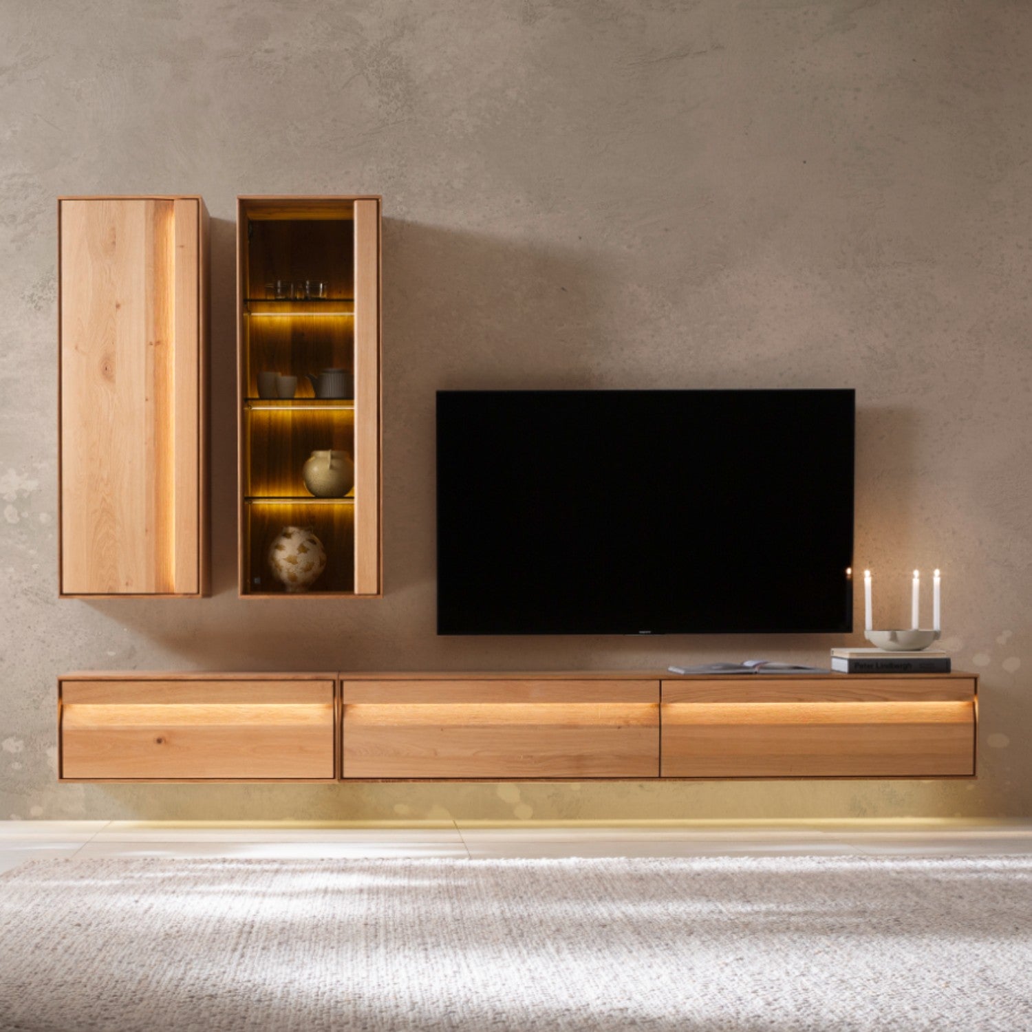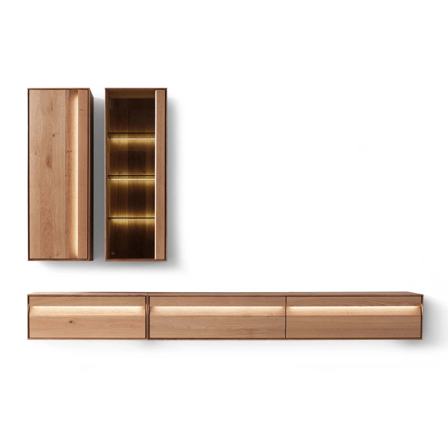 Contur Wohnwand Due Viso inkl. Beleuchtung, mit Glaselement, Wildeiche geölt