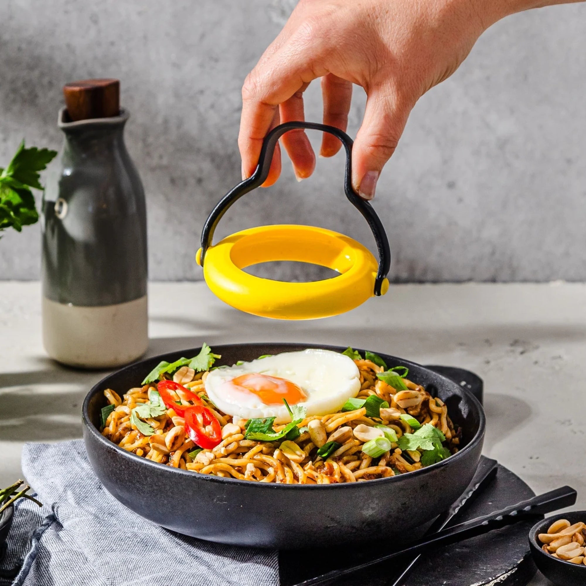 Der Flegg Eierring macht das "Over Easy" tatsächlich zu einem "Too Easy". Der 360° drehbare Griff erlaubt es Ihnen, die Ringe in jede Richtung zu wenden und sie flach zu verstauen, wenn sie nicht in Gebrauch sind. Dank des hitzebeständigen Nylon-Griffs bleibt dieser beim Kochen immer angenehm kühl und sicher zu berühren, sei es beim Wenden oder Servieren.
