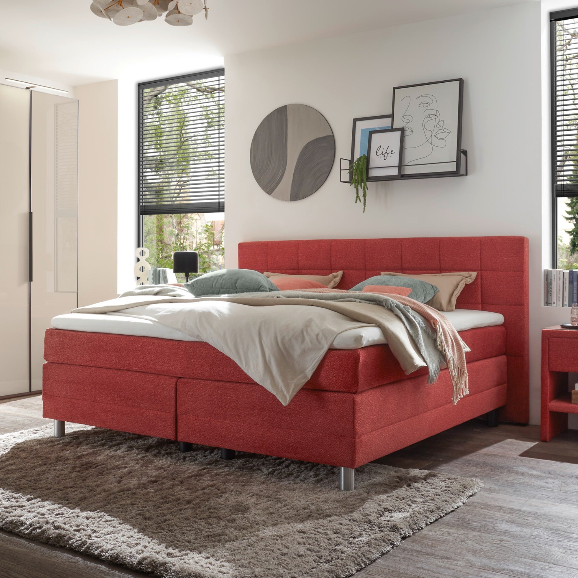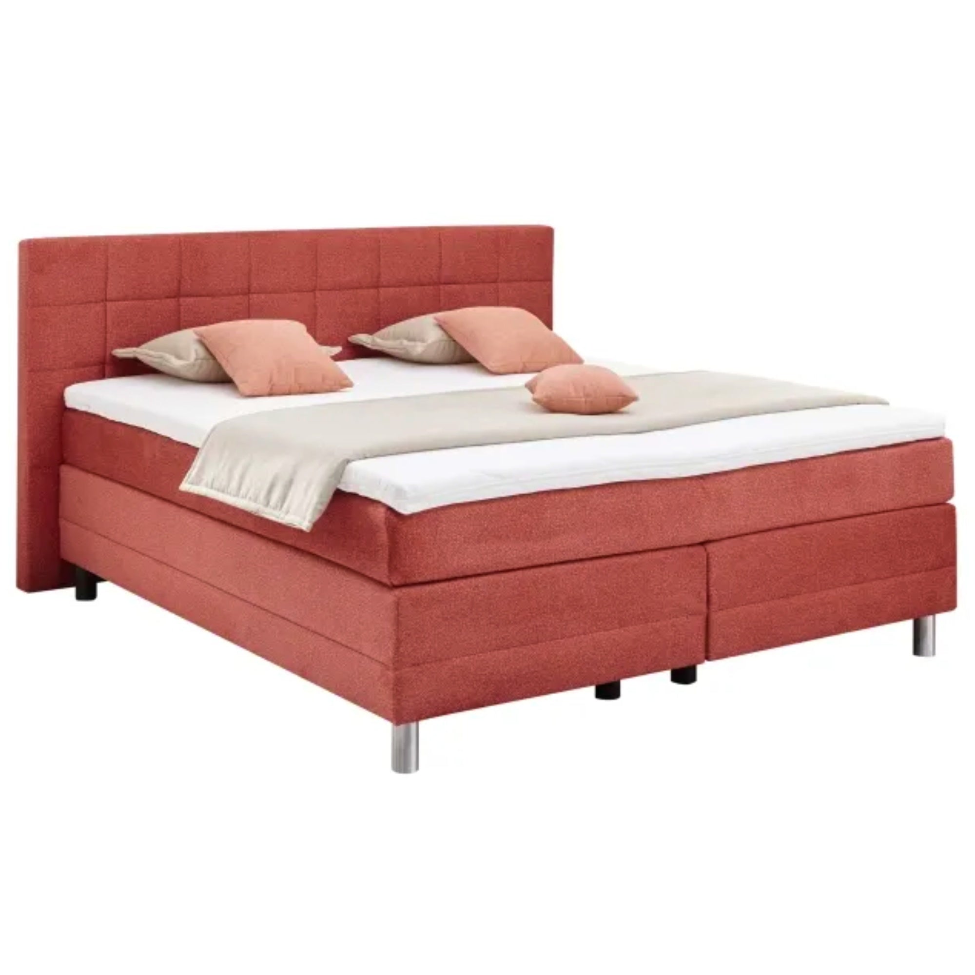 Erleben Sie unvergleichlichen Komfort und Stil mit dem Boxspringbett EM Malo der Marke Europa Möbel-Collection. Dieses Bett, das durch seine großzügige Liegefläche von ca. 180x200 cm beeindruckt, verspricht nicht nur eine erholsame Nacht, sondern auch ein Highlight in Ihrem Schlafzimmer. Der ansprechende rote Stoff verleiht jedem Raum einen modernen und einladenden Look, während die runden, alufarbenen Füße für eine harmonische und zeitgemäße Optik sorgen.