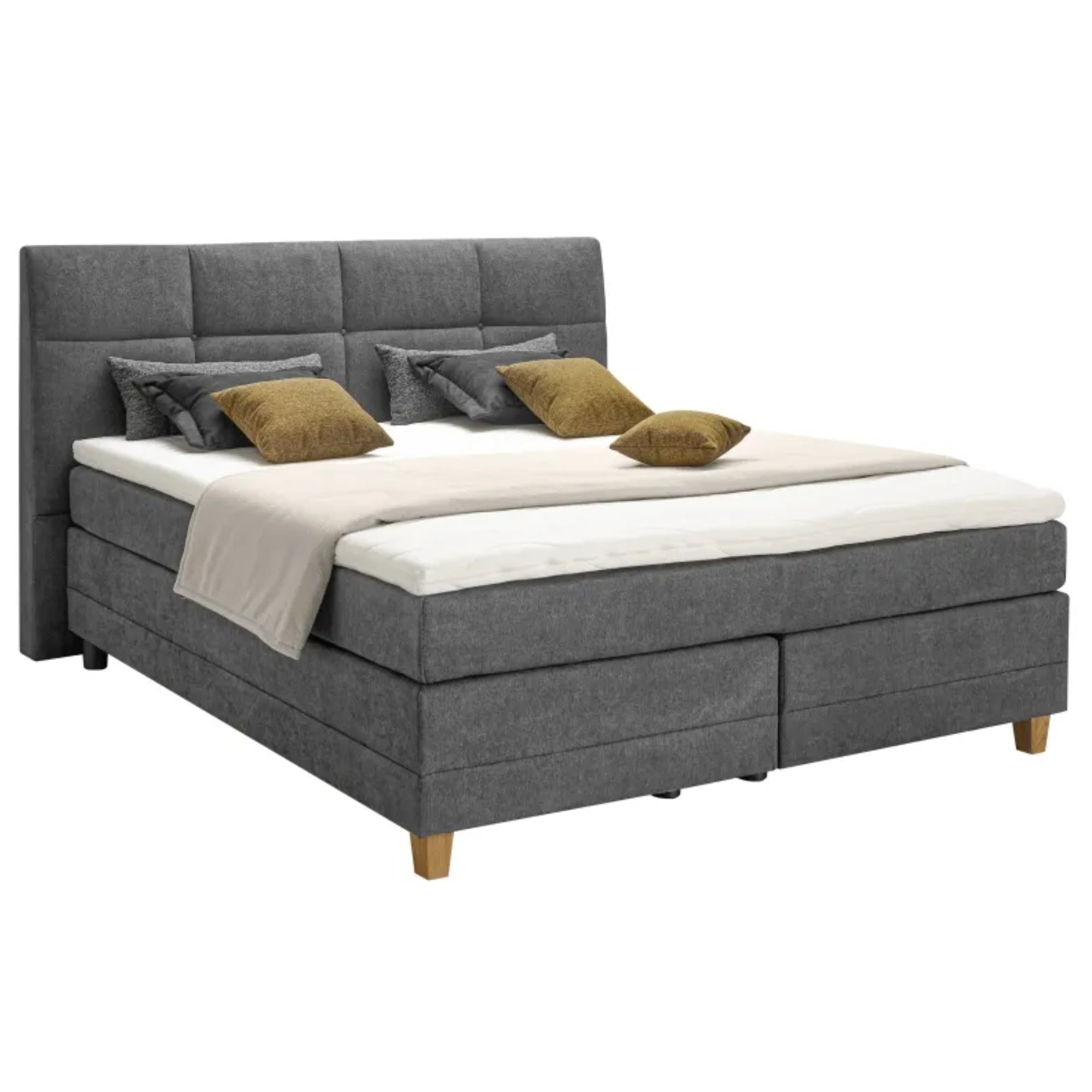 Mit dem Boxspringbett EM Malo verwandeln Sie Ihr Schlafzimmer in eine luxuriöse Wohlfühloase. Die hochwertigen Holzfüße verleihen dem Bett eine natürliche Haptik und Langlebigkeit. Lassen Sie sich jede Nacht in den himmlischen Komfort dieses Bettes sinken und starten Sie jeden Morgen erfrischt und ausgeruht in den Tag. Entscheiden Sie sich für das Boxspringbett EM Malo und erleben Sie, wie es Ihr tägliches Leben verbessert.