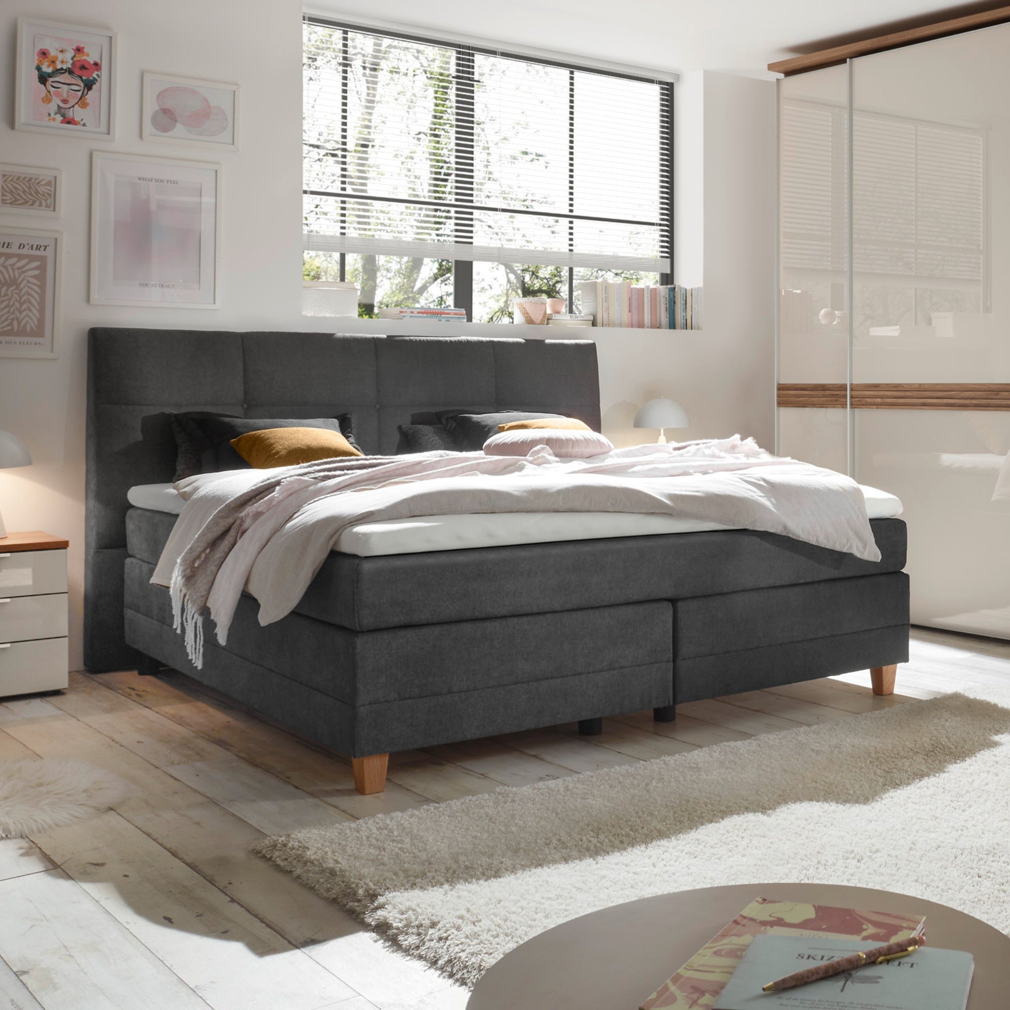 Das Boxspringbett EM Malo bietet Ihnen die Möglichkeit, Ihr Traumbett nach Ihren Wünschen zu gestalten. Wählen Sie aus verschiedenen Bettgrößen, Kopfteilvarianten und einer großen Auswahl an Bezugsfarben, um das perfekte Bett für Ihr Zuhause zu kreieren. Optional ist das Bett auch in Sonderlänge erhältlich, um wirklich jedem Bedarf gerecht zu werden.