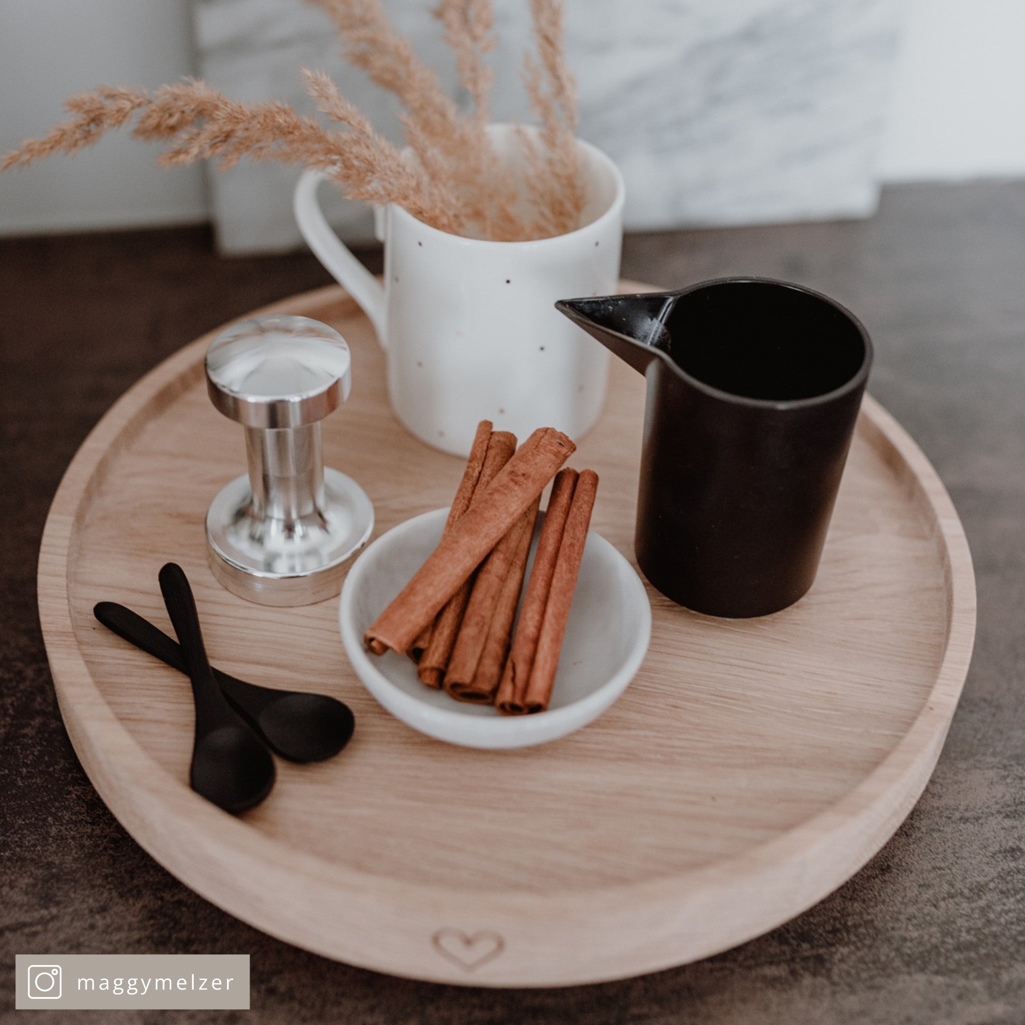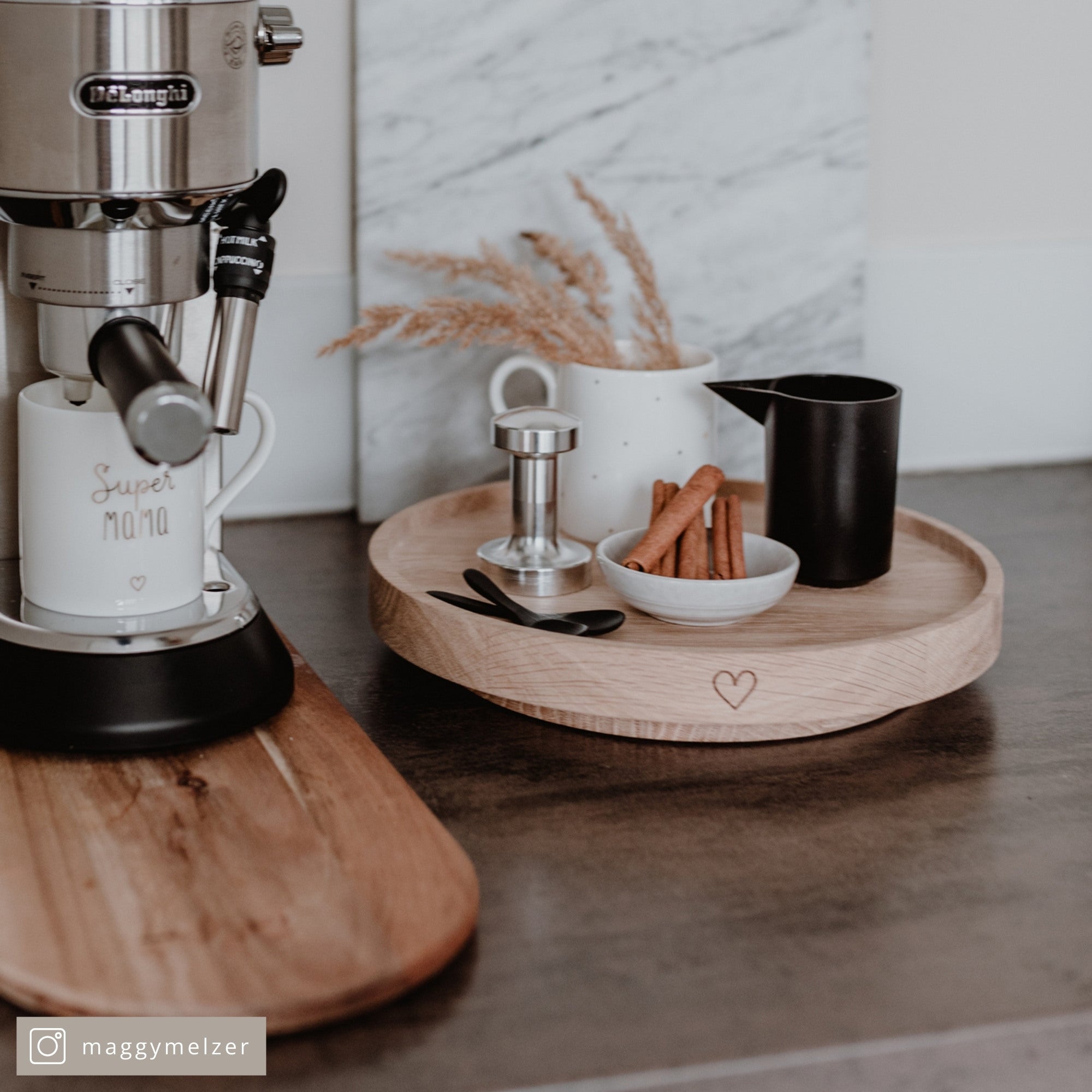 Unser Drehteller aus Eiche ist nicht nur ein absoluter Hingucker, sondern dazu noch ein Aufräumtalent. Mit seinem Durchmesser von 28 cm macht er sich perfekt in Küchenschränken und Regalen. Wir nutzen ihn für Öle und Gewürze, die sich durch das Drehen des Tellers, leichter aus dem Schrank entnehmen lassen. Auch als Kaffeestation für Zucker, Milchkännchen und Becher ist der Drehteller perfekt geeignet. Durch eine Kante werden die sich drehenden Gegenstände vor dem Verrutschen geschützt. Auf der Unterseite sind kleine Gumminoppen eingearbeitet, sodass auch die Drehplatte am Platz gehalten wird.Herstellerinformation: Eulenschnitt c/o GOLDENZEBRA GmbH, Heinickestraße 2, D-20249 Hamburg, hilfe@eulenschnitt.com