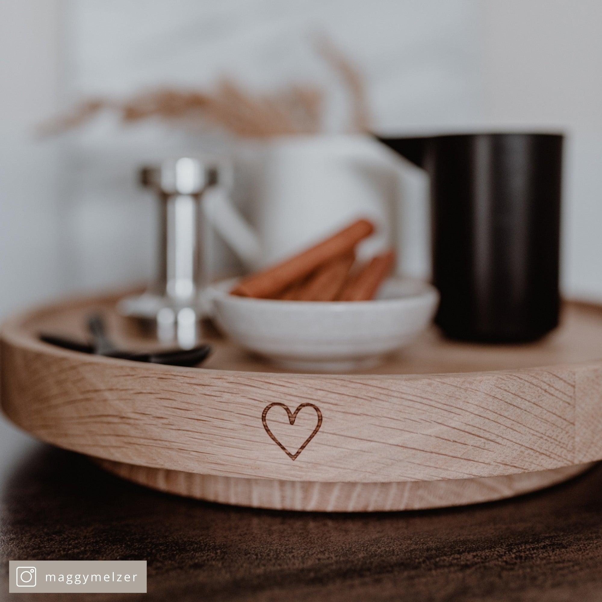 Eulenschnitt Drehteller aus Holz, Herz-Motiv, 28 cm