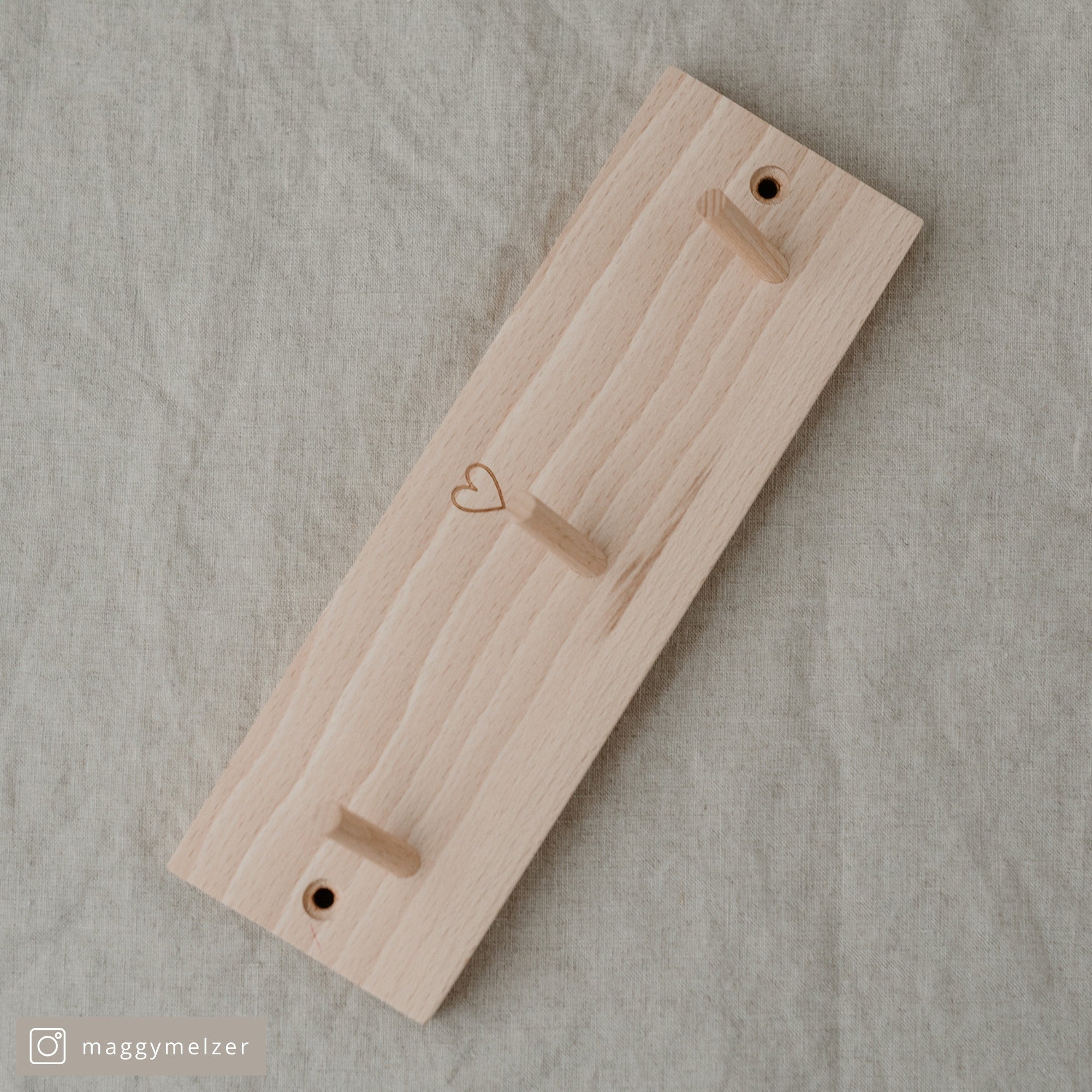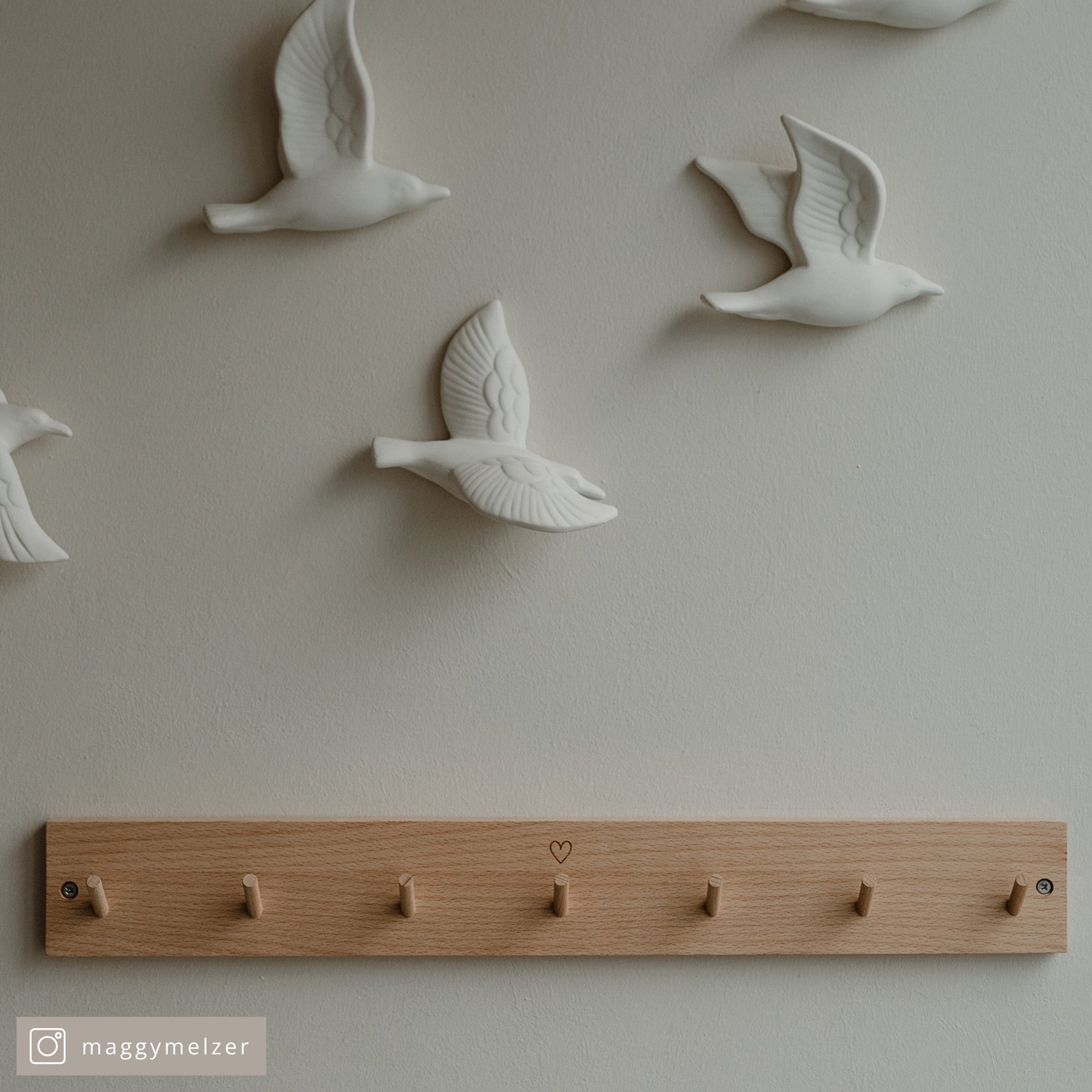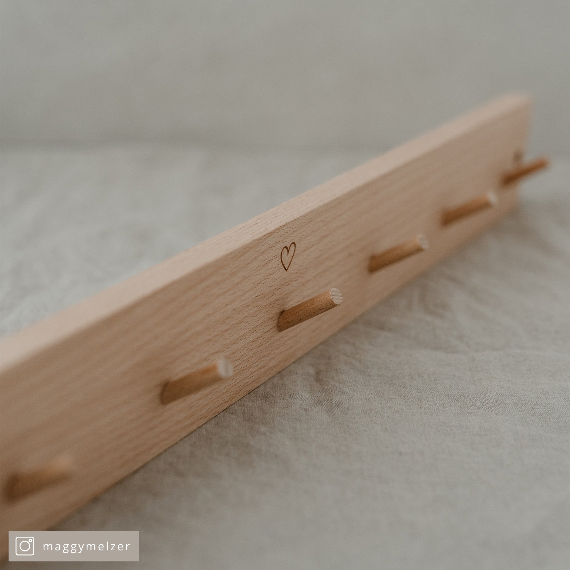 Eulenschnitt Hakenleiste, Herz-Motiv, Kleiderhaken 57cm