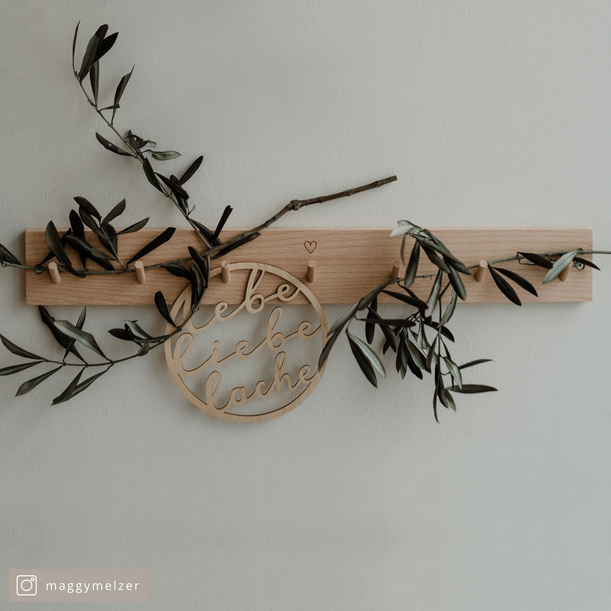 Unsere Hakenleiste Kleine Dinge ist ein absoluter Allrounder. Nicht nur in der Küche zieht sie die Blicke auf sich - durch den eingefrästen Spruch "Es sind die kleinen Dinge im Leben" ist sie auch ein toller Blickfang im Kinderzimmer, Flur oder Badezimmer. Unsere Leiste ist aus hochwertigem Buchenholz gefertigt und dann veredelt wurden. Ihr findet insgesamt 7 Haken, um eure Dinge anzuhängen. Durch die 2 vorgebohrten Löcher könnt ihr die Hakenleiste mit euren Schrauben und Dübeln befestigen. (Schrauben und Dübel sind nicht im Lieferumfang enthalten)Herstellerinformation: Eulenschnitt c/o GOLDENZEBRA GmbH, Heinickestraße 2, D-20249 Hamburg, hilfe@eulenschnitt.com