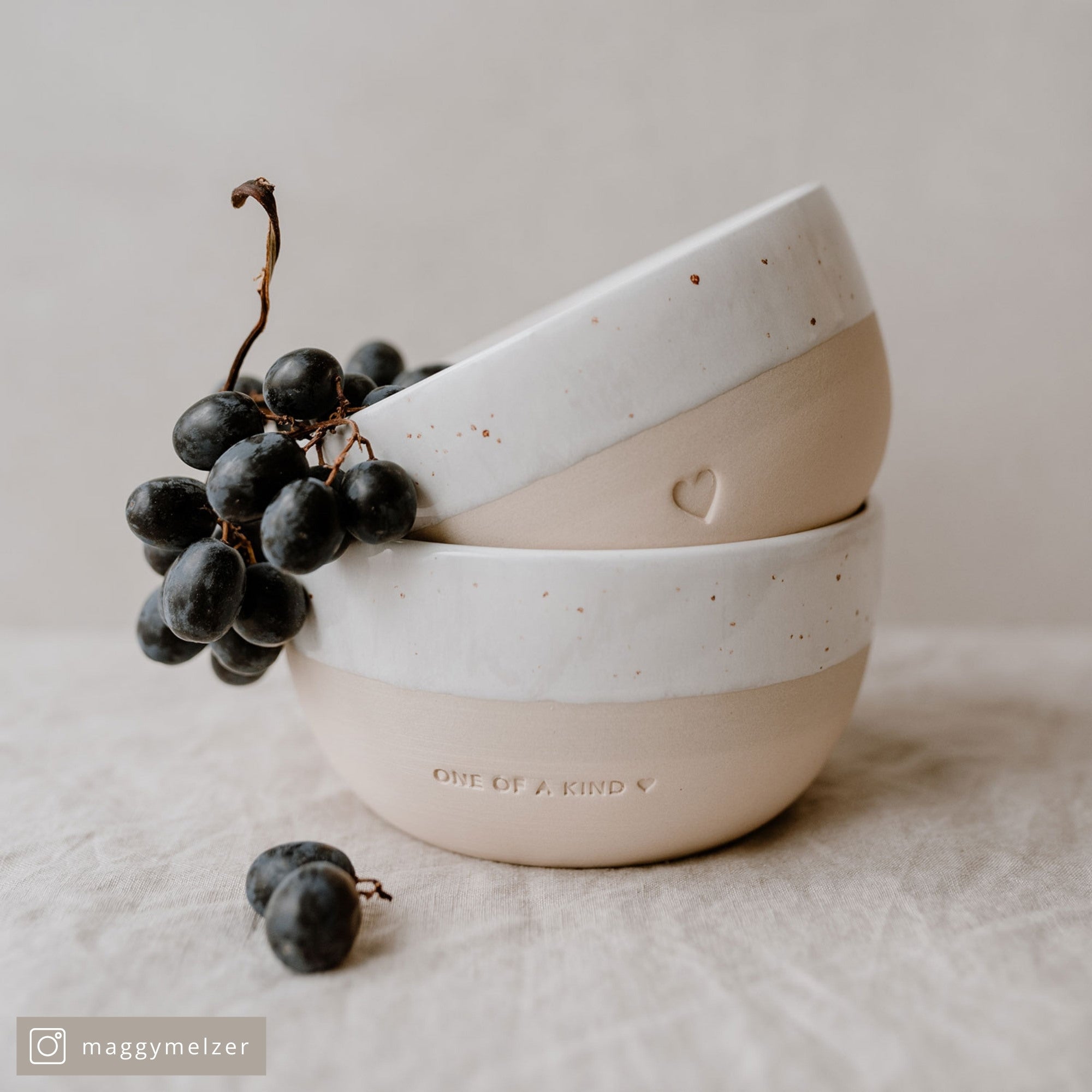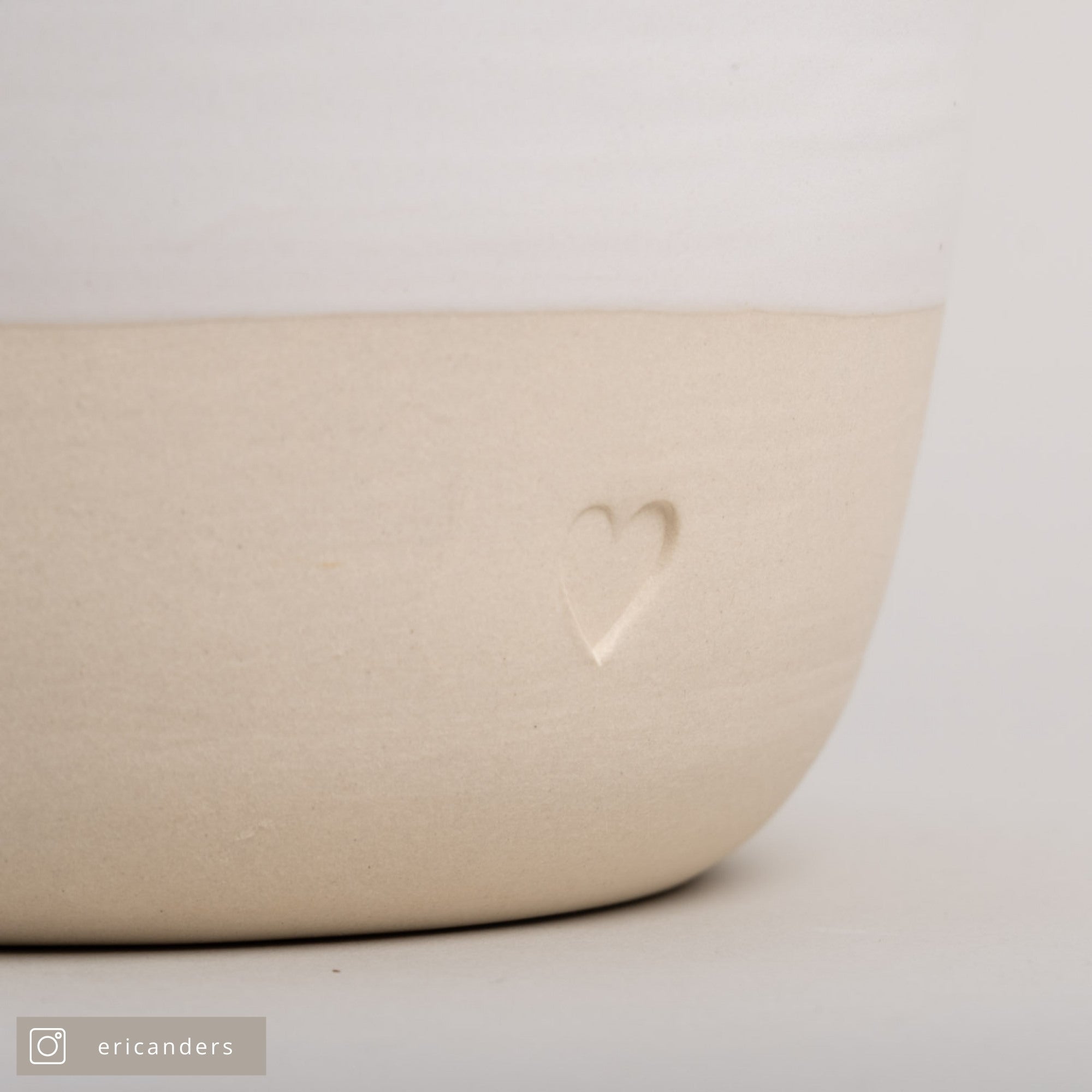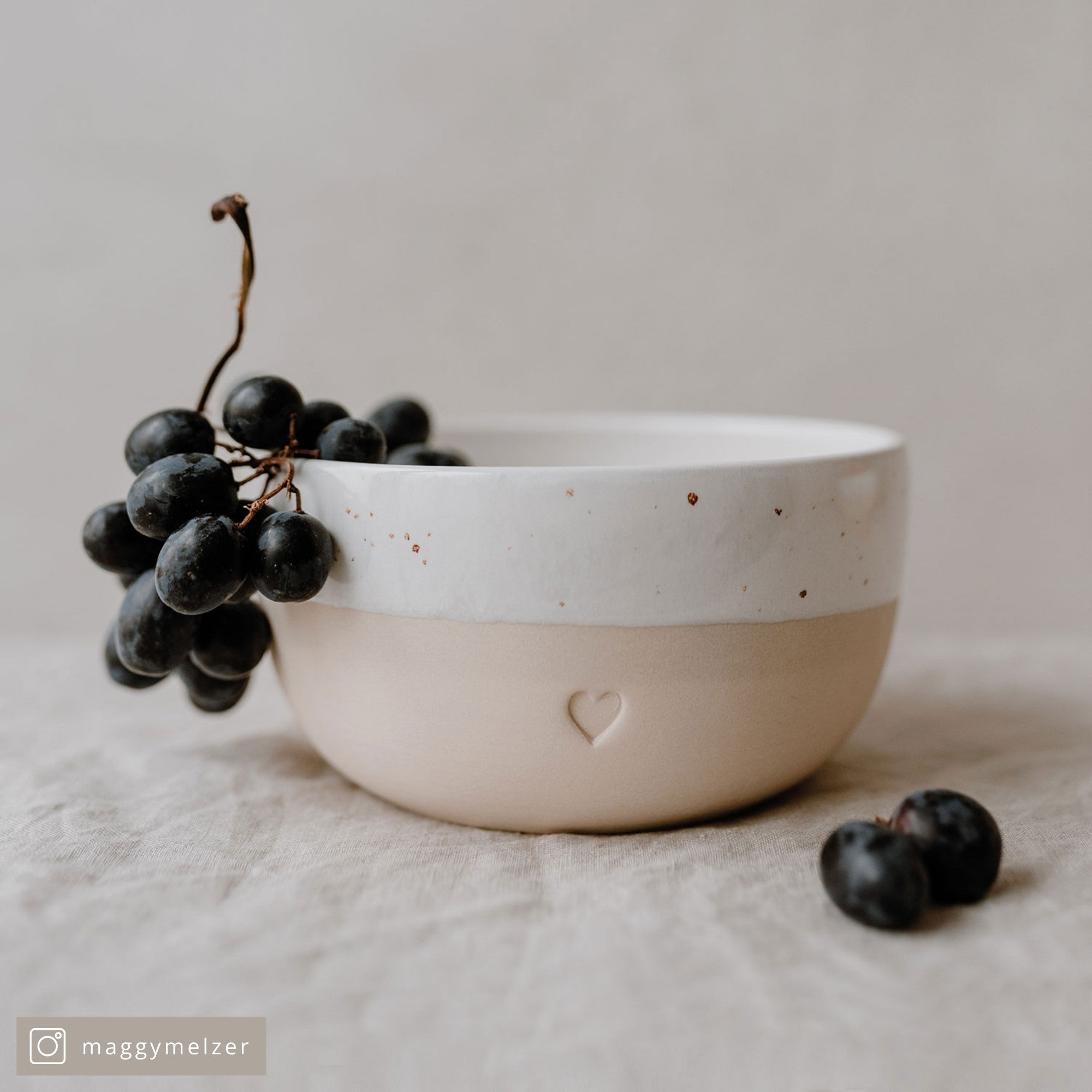 Wir haben sehr viel Herzblut in eine neue Kollektion gesteckt, die von der Form, dem Ton, dem Glazing, sowie dem Design von uns entwickelt wurde. Eine kleine Töpferei aus Portugal produziert diese wundervolle Kollektion in liebevoller Handarbeit & ist ein großartiger neuer Begleiter auf unserem kreativen Weg. Unsere Schüsseln lassen die Herzen höher schlagen, die die Individualität von Ton & Glasur lieben, denn jede einzelne Schüssel hat seinen ganz eigenen Touch. Das minimalistische Design und die natürlichen Farbnuancen werden von der welligen Form abgerundet. Das Highlight der Schüssel ist die Blindprägung in Form eines Herzens. Wir sind verliebt, voller purer Freude & können es kaum abwarten unsere neue Schüssel Herz 15cm in euren Händen zu sehen!Herstellerinformation: Eulenschnitt c/o GOLDENZEBRA GmbH, Heinickestraße 2, D-20249 Hamburg, hilfe@eulenschnitt.com