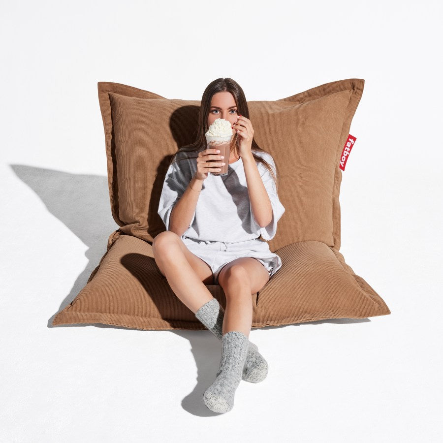 Neben seinem ökologischen Anspruch überzeugt der Sitzsack auch durch seine hochwertige Verarbeitung und flexible Einsatzmöglichkeiten. Der robuste Cordstoff sorgt für angenehme Haptik und zeitlosen Stil, während die pflegeleichten Eigenschaften den Alltag erleichtern. Der Bezug lässt sich per Handwäsche reinigen und behält dabei seine Form und Struktur über lange Zeit.