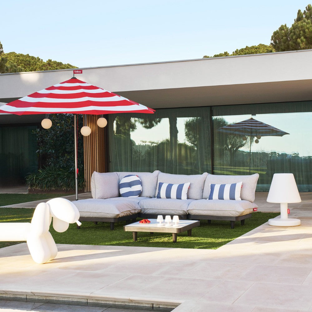 Hergestellt aus robustem, wetterfestem Polyethylen und ausgestattet mit einer Aluminiumplatte im Fuß, bietet die Edison the Grand eine hervorragende Stabilität, selbst bei Wind und Wetter. Sie eignet sich dank ihrer UV-Beständigkeit und schmutz- sowie wasserabweisenden Eigenschaften ideal für den Innen- und Außenbereich.