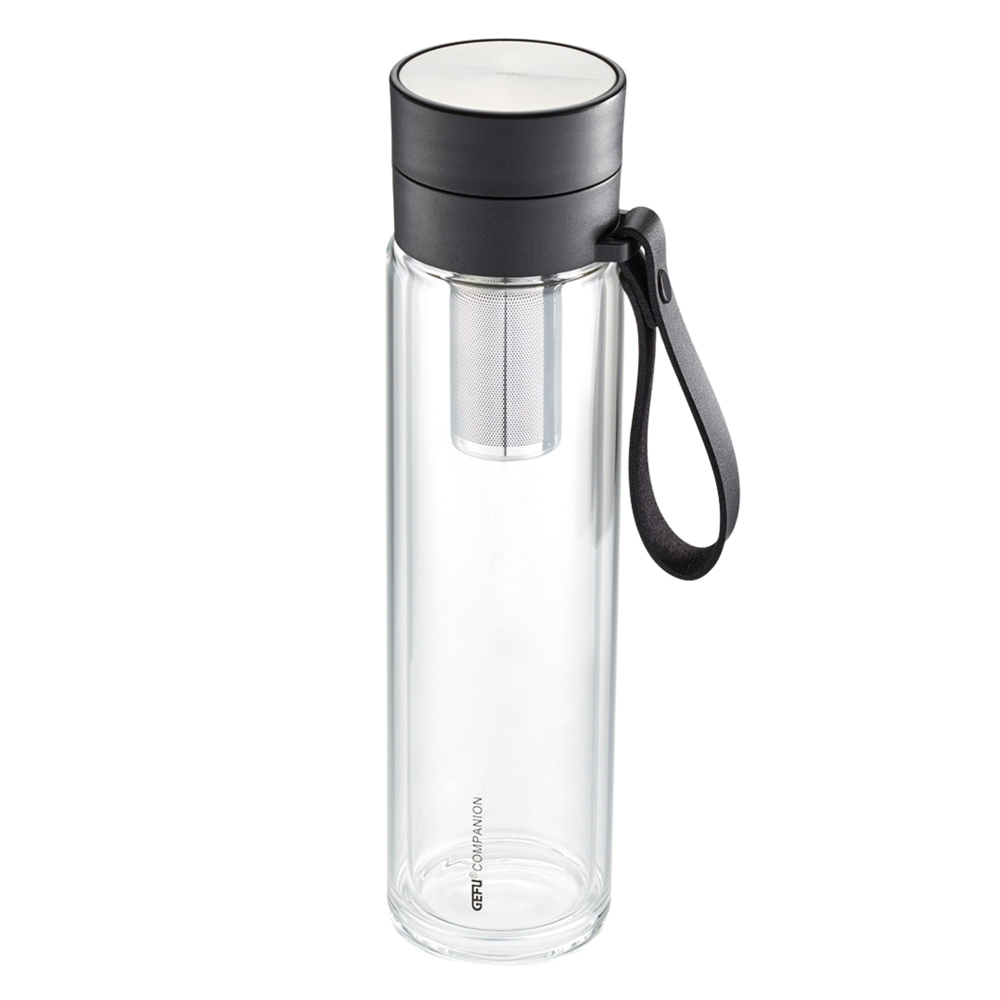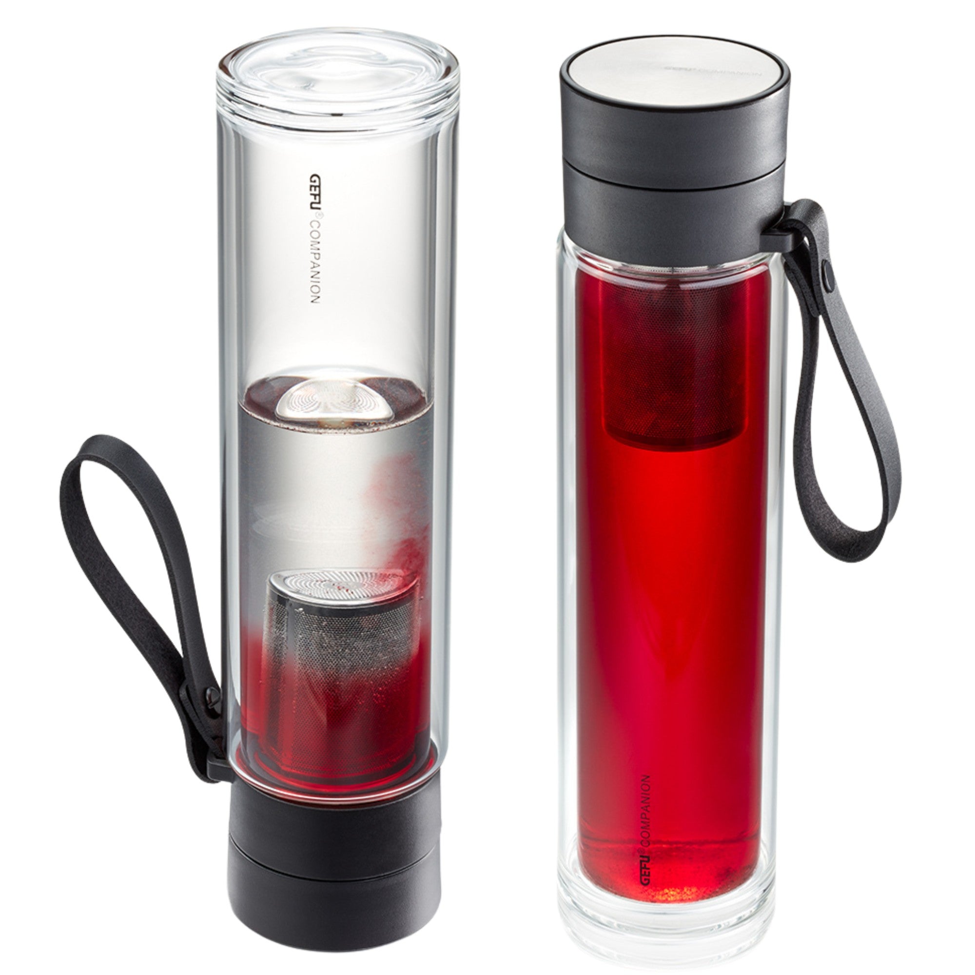 Gefu Glastrinkflasche COMPANION 450ml, doppelwandig, Borosilitglas, mit Teefilter, Schutzhülle aus Filz