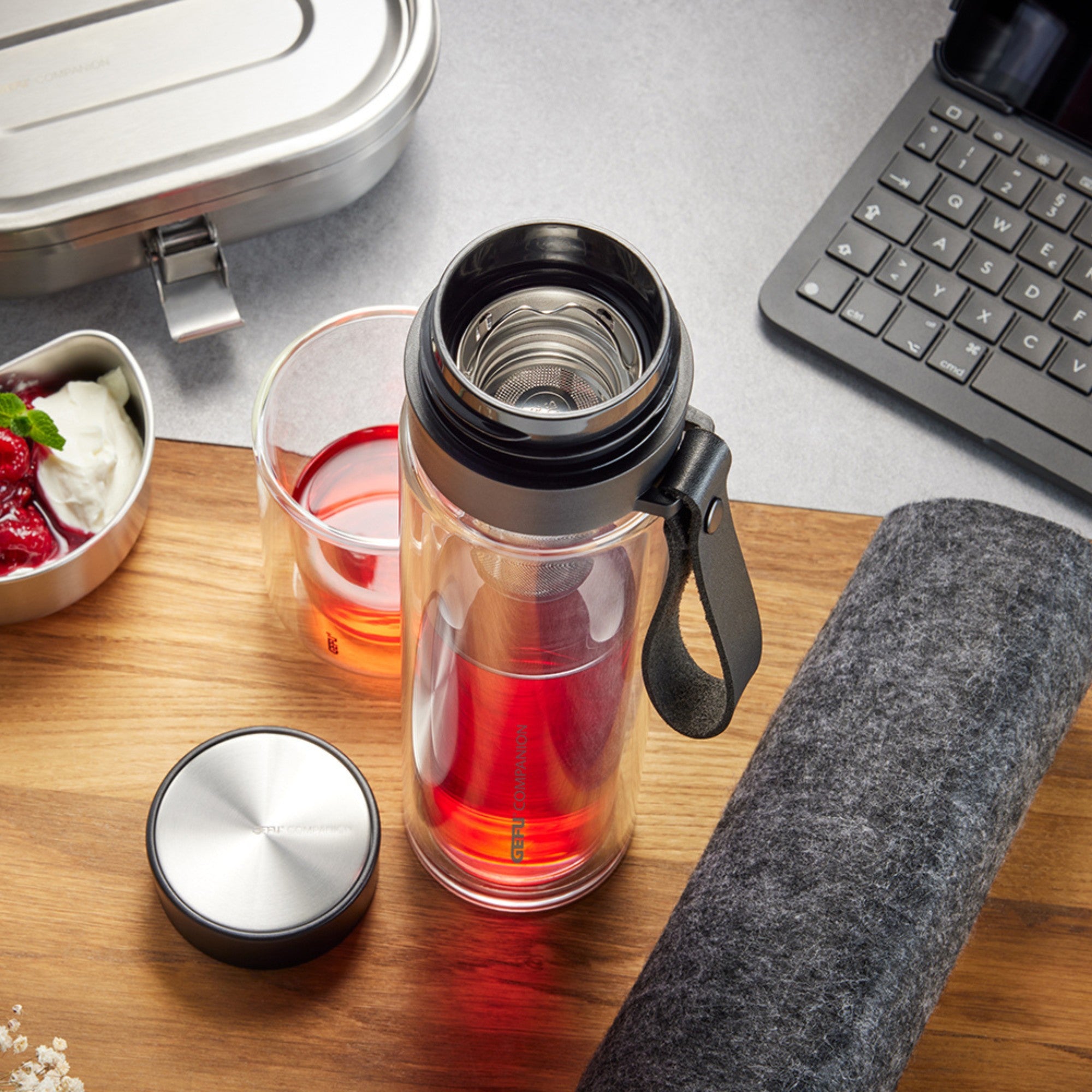 Die Glastrinkflasche COMPANION ist nicht einfach nur eine Flasche – sie ist Ihr stilvoller Begleiter, egal ob im Büro, auf Reisen, beim Sport oder beim Teegenuss unterwegs. Dank des hochwertigen Borosilikatglases bleibt Ihr Tee länger warm und Ihre Erfrischungsgetränke länger kalt. Und das alles in einer schützenden Filzhülle, die für sicheren Transport sorgt.