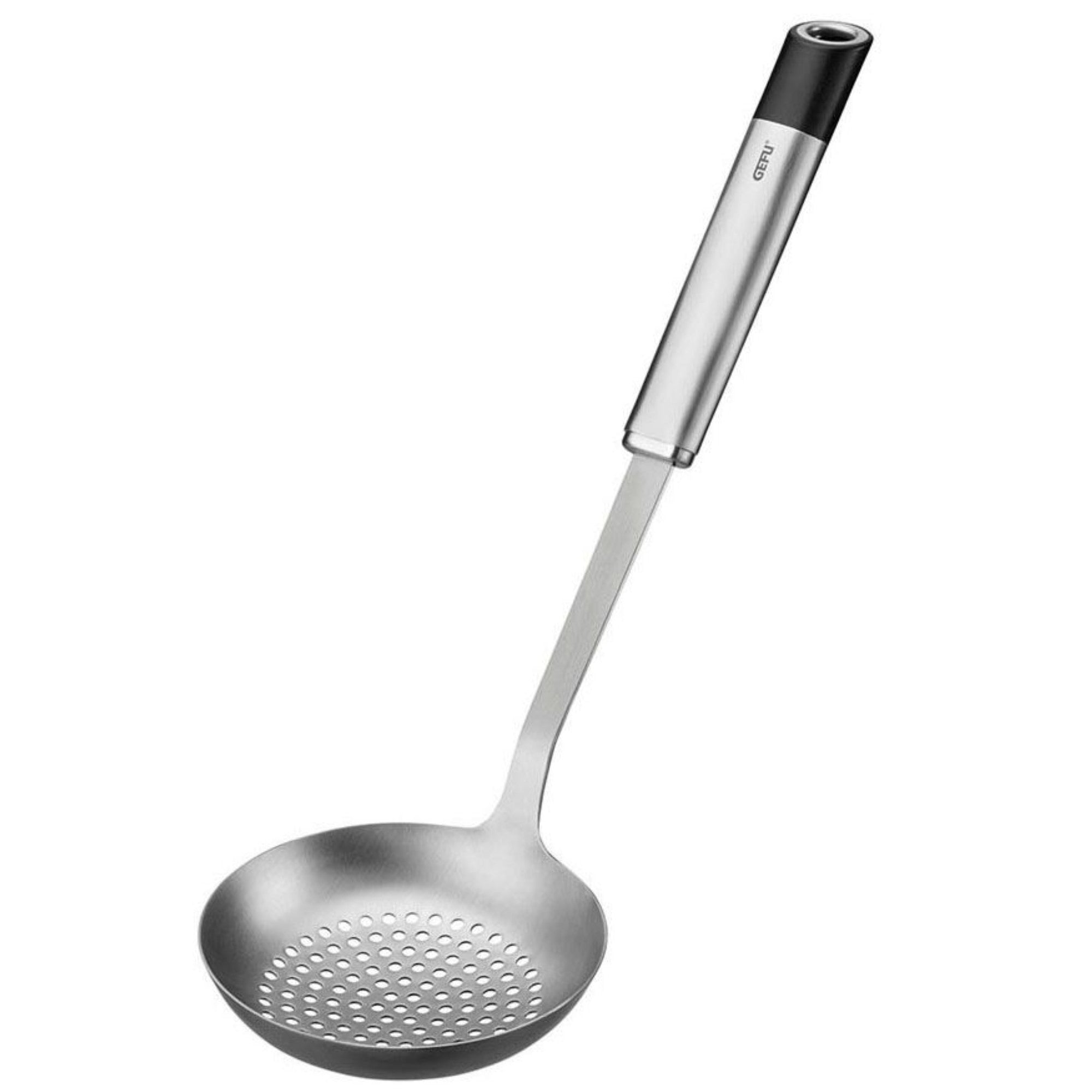 Mit dem extra tief gewölbten Schaumlöffel werden Klöße, Gnocchi und Pasta sicher aus der Garflüssigkeit geholt – und durch die gelochte Schöpffläche tropft überschüssige Flüssigkeit einfach ab.Herstellerinformation: GEFU GmbH, Braukweg 28, D-59889 Eslohe, info@gefu.com