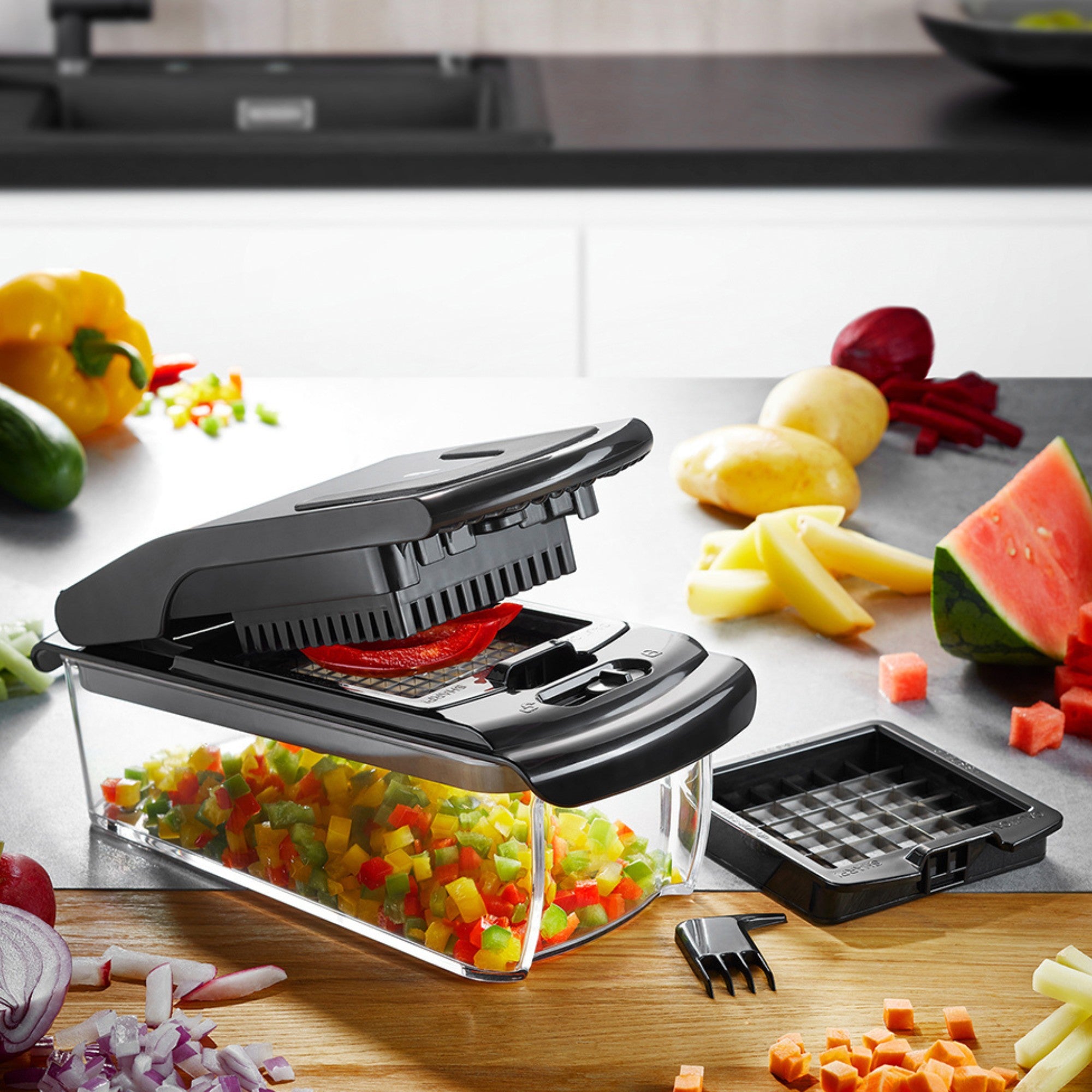 Stellen Sie sich vor, Sie könnten frisches Obst und Gemüse in Sekundenschnelle in farbenfrohe Würfel oder vielseitig verwendbare Stifte verwandeln – ohne Mühe und mit perfekten Ergebnissen jedes Mal. Der Würfel- & Stifteschneider Treppo von Gefu macht genau das möglich.