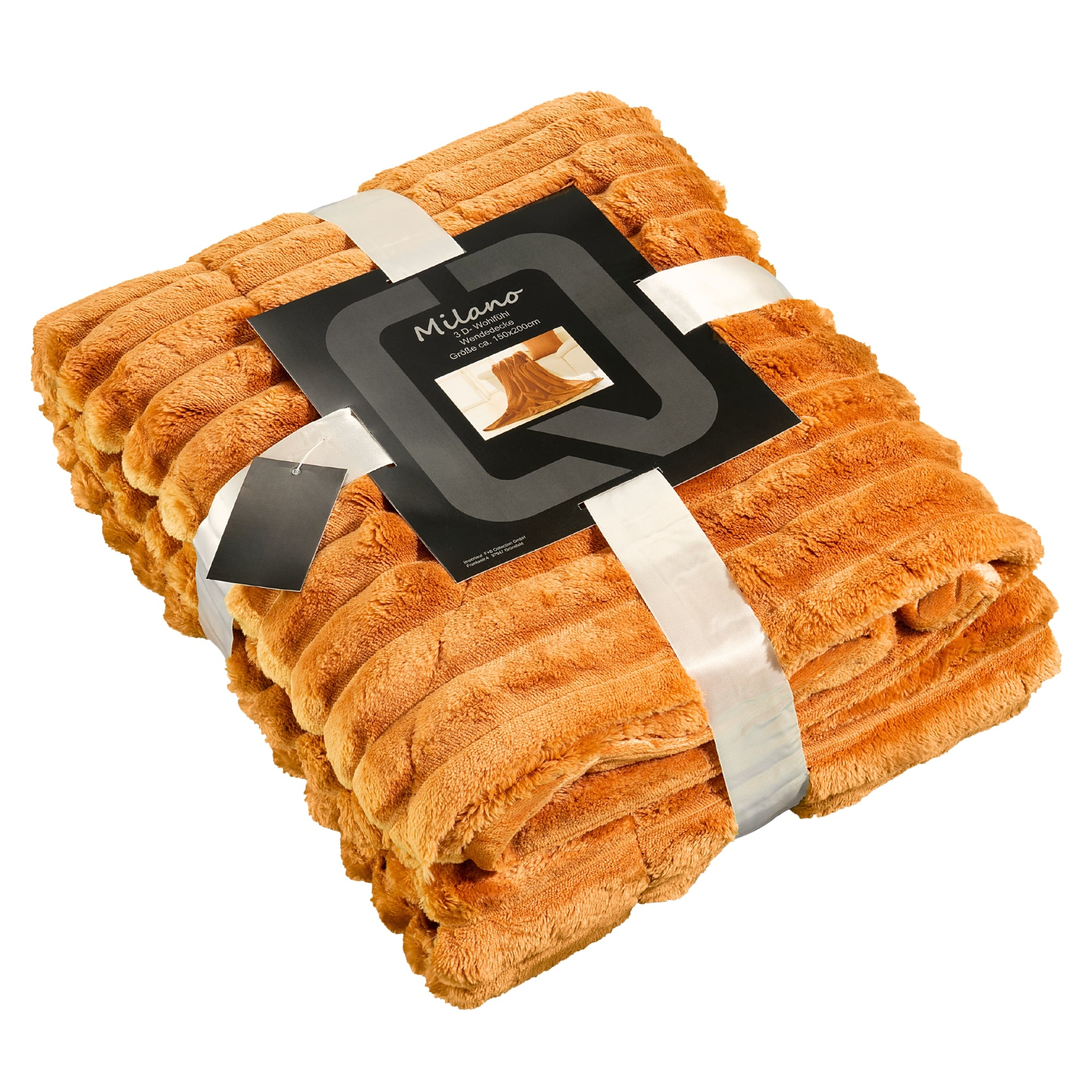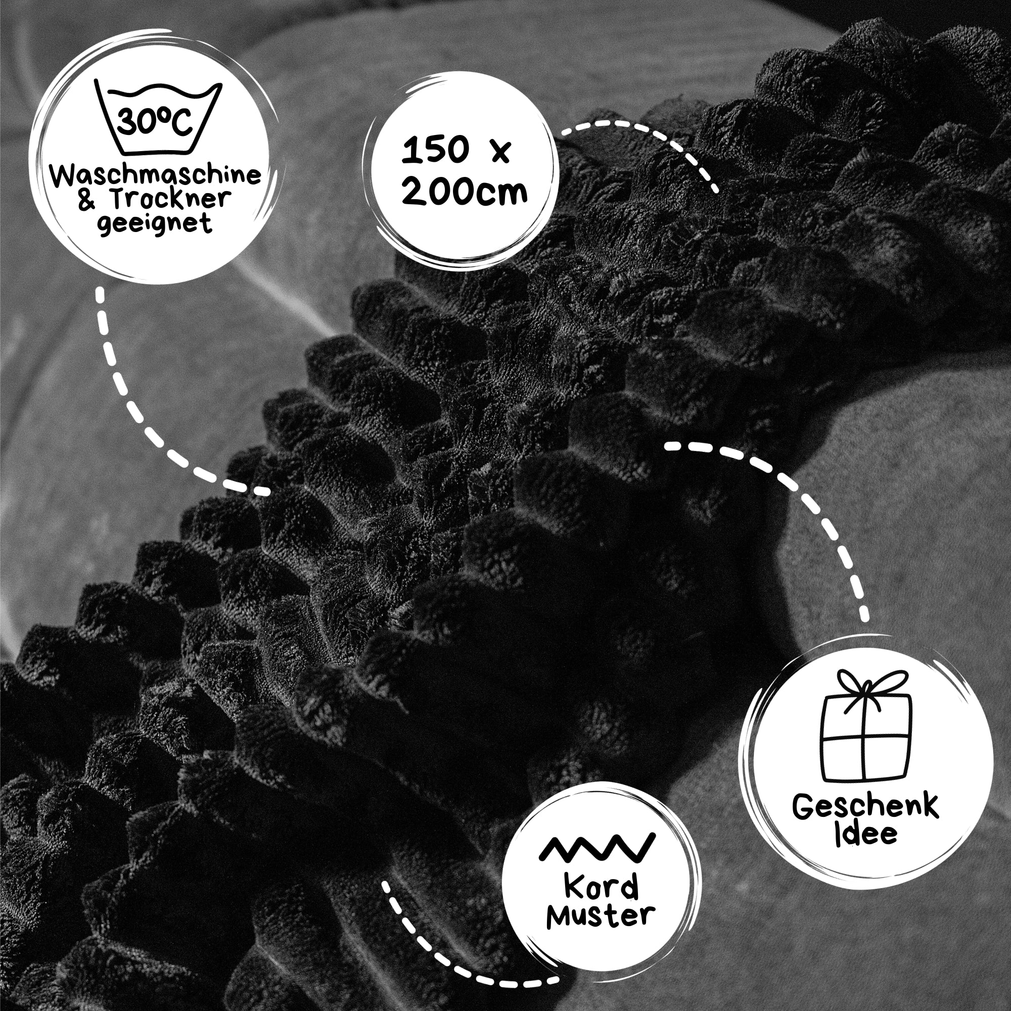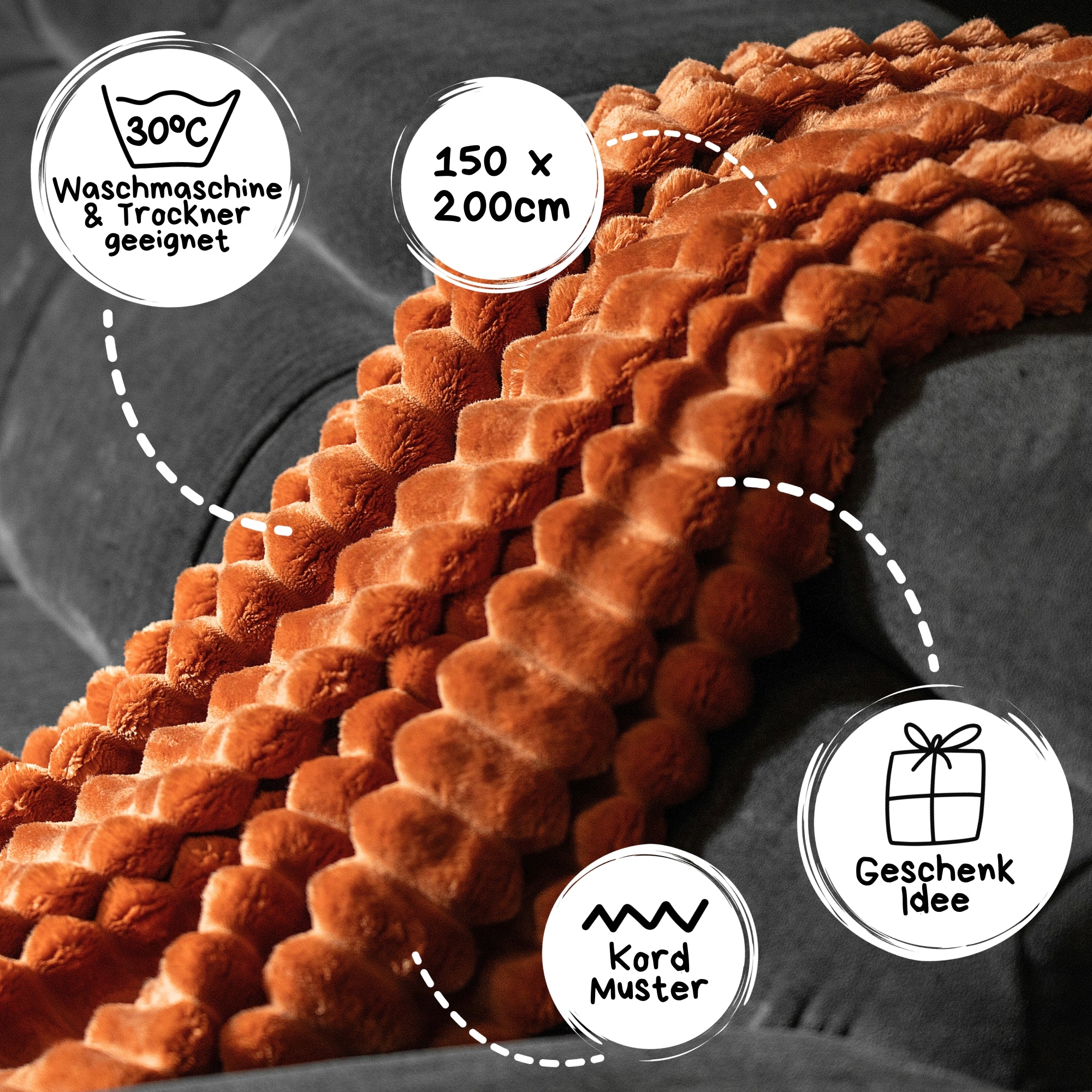 Die Kuscheldecke 'Milano' verkörpert ultimative Gemütlichkeit und Wärme für Ihr Zuhause. Diese außergewöhnlich warme und flauschige Decke ist nicht nur ein einfaches Accessoire für Ihr Zuhause; sie erfüllt gleich mehrere Funktionen und ist ein wahres Multitalent. Mit großzügigen Abmessungen im XL-Format von 150x200 cm bietet die 'Milano'-Decke aus hochwertigem Polyester ausreichend Platz, um sich vollständig darin einzukuscheln und die wohlige Wärme zu genießen. Was die 'Milano'-Kuscheldecke besonders auszeichnet, ist ihre 3D-Kordoptik. Diese besondere Textur verleiht der Decke nicht nur ein ansprechendes Design, sondern auch eine interessante Haptik. Das 3D-Kordmuster verleiht der Decke ein elegantes Erscheinungsbild und schafft gleichzeitig ein angenehmes Tastgefühl. Egal, ob Sie die Decke als stilvolles Home-Accessoire, als Wohndecke auf Ihrem Sofa oder als dekorativen Bettüberwurf verwenden möchten - die 'Milano'-Decke steht für höchsten Komfort und stilvolles Design. Tauchen Sie ein in ihre flauschige Wärme und genießen Sie die besondere Textur, die diese Decke zu einem einzigartigen Schmuckstück für Ihr Zuhause macht.
