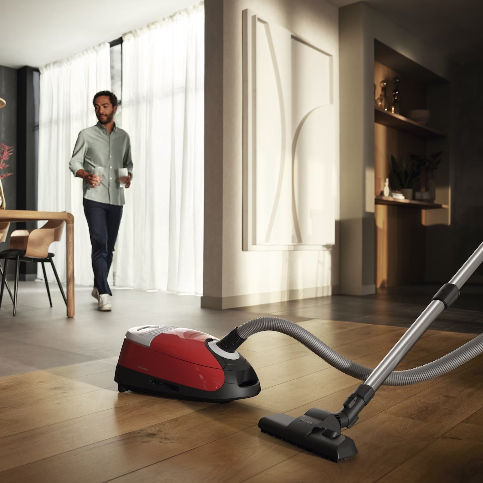 Miele Bodenstaubsauger Complete C2 PowerLine mit Beutel, effizientes & stromsparendes Staubsaugen, Mangorot