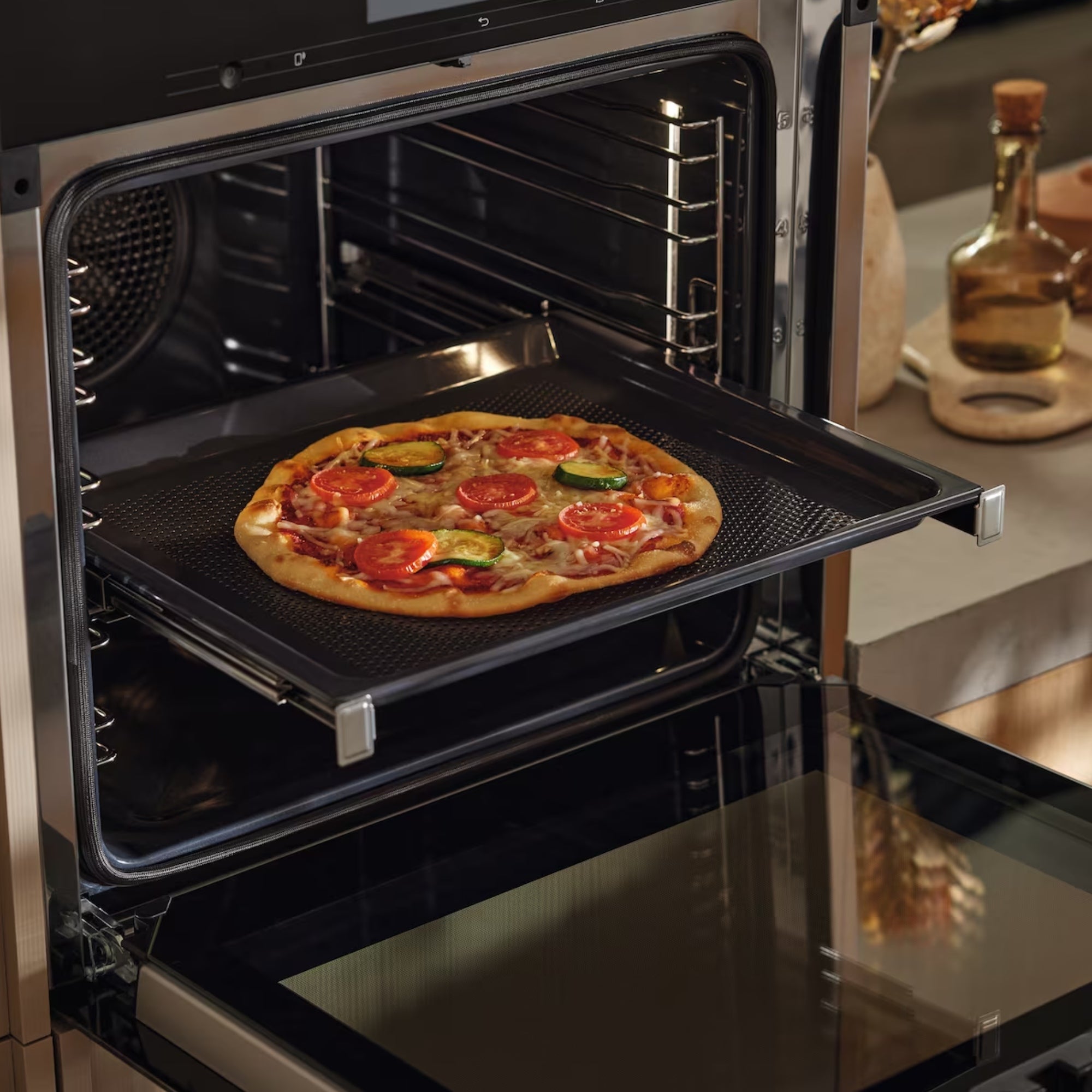 Das gelochte Miele Gourmet Back- und AirFry-Blech ist der Schlüssel zu herrlich krossen Ergebnissen – egal ob Brot, Pommes frites oder Gebäck. Dank der speziell entwickelten Lochung wird die Luftzirkulation entscheidend verbessert, was sowohl beim Klimagaren als auch beim AirFrying für perfekte Gleichmäßigkeit sorgt. Kompatibel mit den Miele Ofen Generationen H 2000/6000/7000 sowie DGC 6000/7000, ist dieses Blech vielseitig einsetzbar und ideal für Liebhaber von knusprigen Köstlichkeiten. Die PerfectClean Veredelung sorgt zudem für eine mühelose Reinigung.