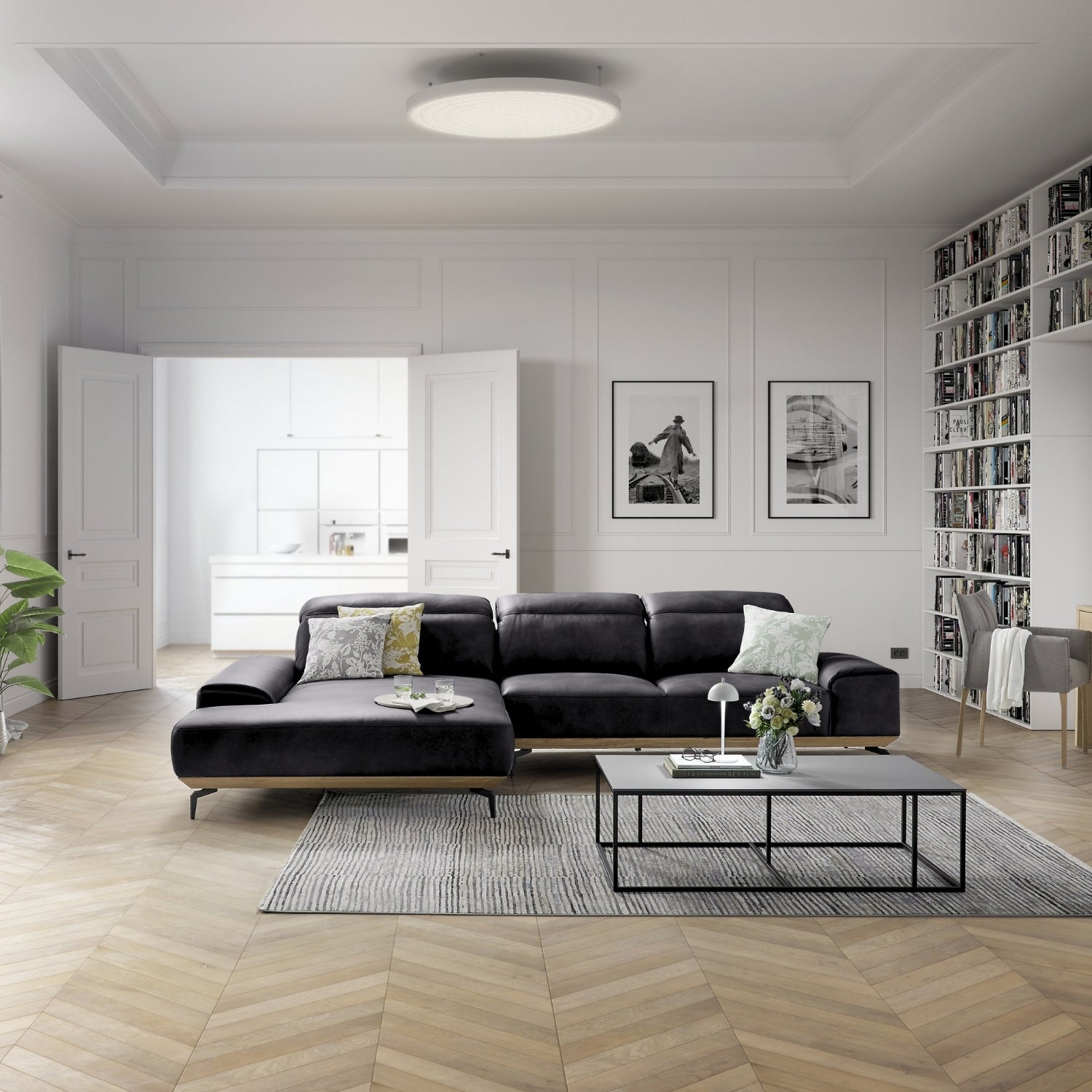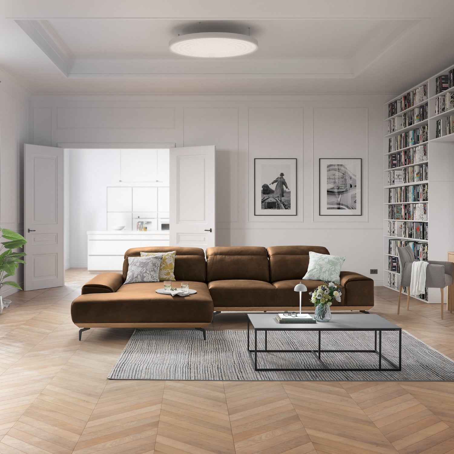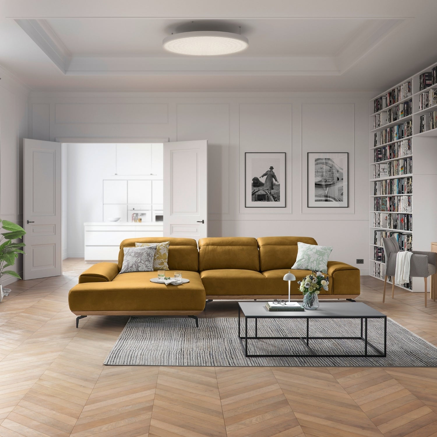 Entdecken Sie das Musterring Ecksofa MR 2490 - das Herzstück Ihrer Wohnlandschaft. Ob bei einer Party mit Freunden, einem gemütlichen Familienbesuch oder dem ersten Date im eigenen Zuhause, dieses Sofa ist Ihr perfekter Begleiter für besondere Momente. Die extrabreite Longchair-Option und die weiche Polsterung schaffen eine Oase der Entspannung, ideal für gemütliche Serienabende oder romantische Stunden zu zweit.