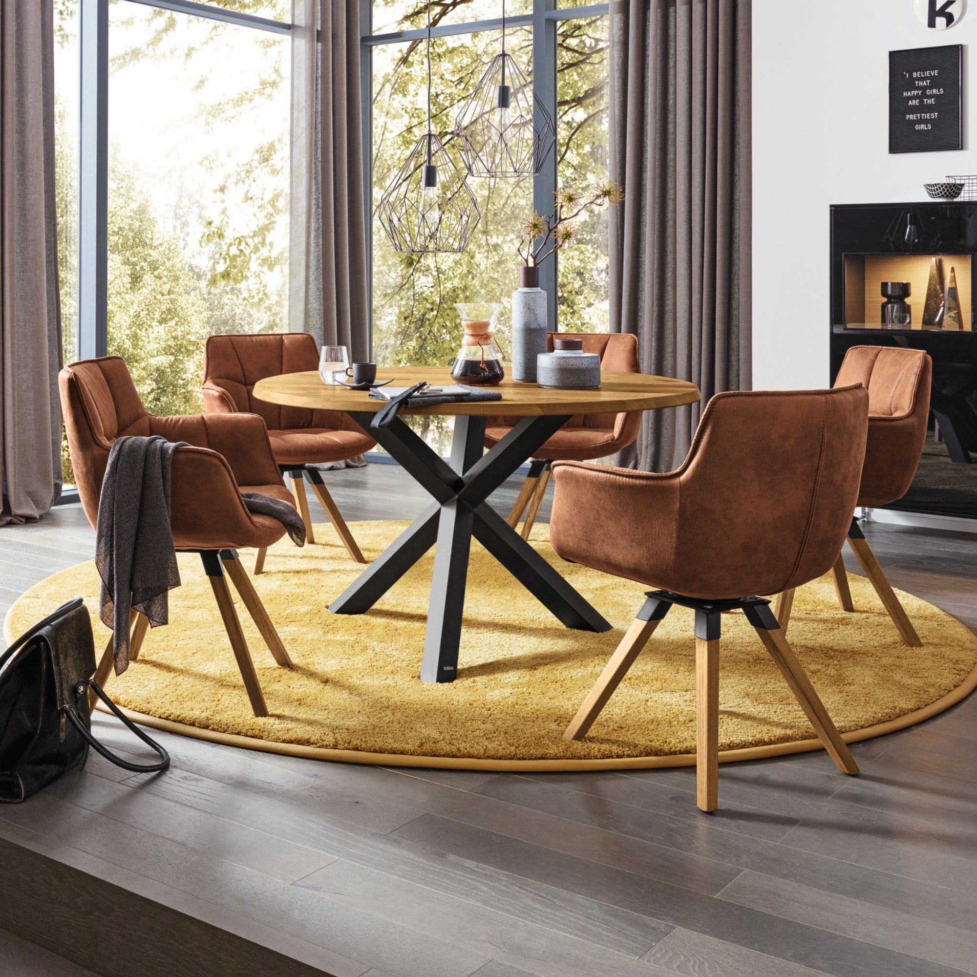 - Das Stativ aus Wildeiche entspricht der selben Farbe und Ausführung wie der Musterring Esstisch Tamina aus Charakter-Eiche