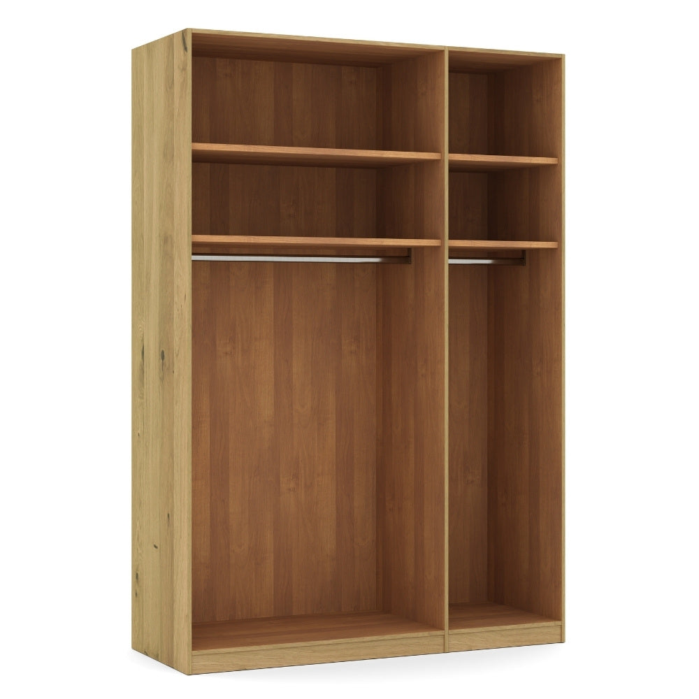 Die Drehtüren-Konstruktion bietet Ihnen praktischen Komfort im Alltag. Sie ermöglichen es, alle Türen gleichzeitig zu öffnen und so den gesamten Schrankinhalt auf einen Blick zu überblicken. Die großzügige Inneneinteilung bietet Platz für verschiedene Bedürfnisse. Mit zwei Einlegeböden und einer Kleiderstange pro Fach sind Ordnung und Übersichtlichkeit garantiert.