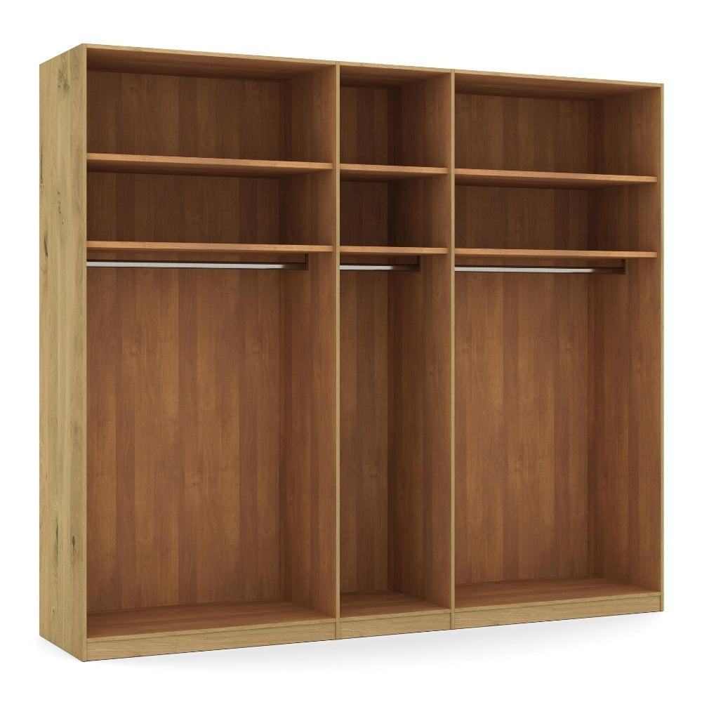 Doch nicht nur die Optik überzeugt! Die praktischen Drehtüren bieten Ihnen einen hervorragenden Überblick über den gesamten Schrankinhalt, da alle Türen gleichzeitig geöffnet werden können. Dank der flexiblen Innenaufteilung mit zwei Einlegeböden und einer Kleiderstange pro Fach bleibt Ihre Kleidung bestens organisiert – egal ob gefaltete Jeans, hängende Hemden oder kleinere Accessoires wie Socken und Unterwäsche. Mit einer Tiefe von 56 cm bietet der Schrank ausreichend Stauraum für all Ihre Lieblingsstücke.