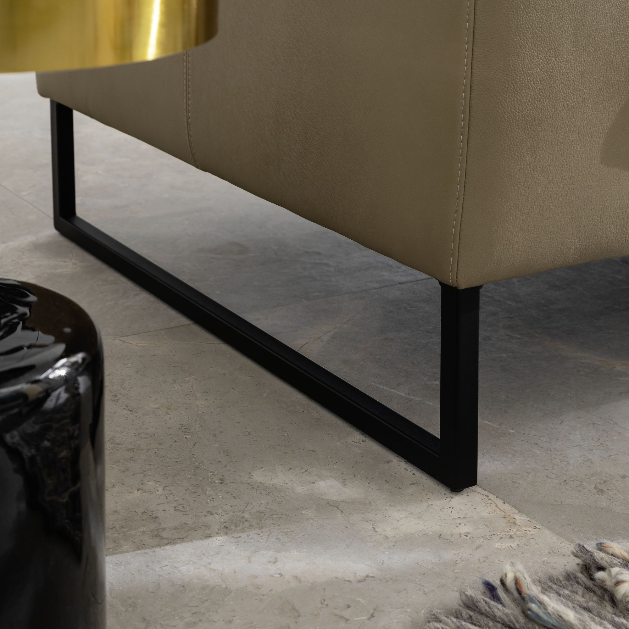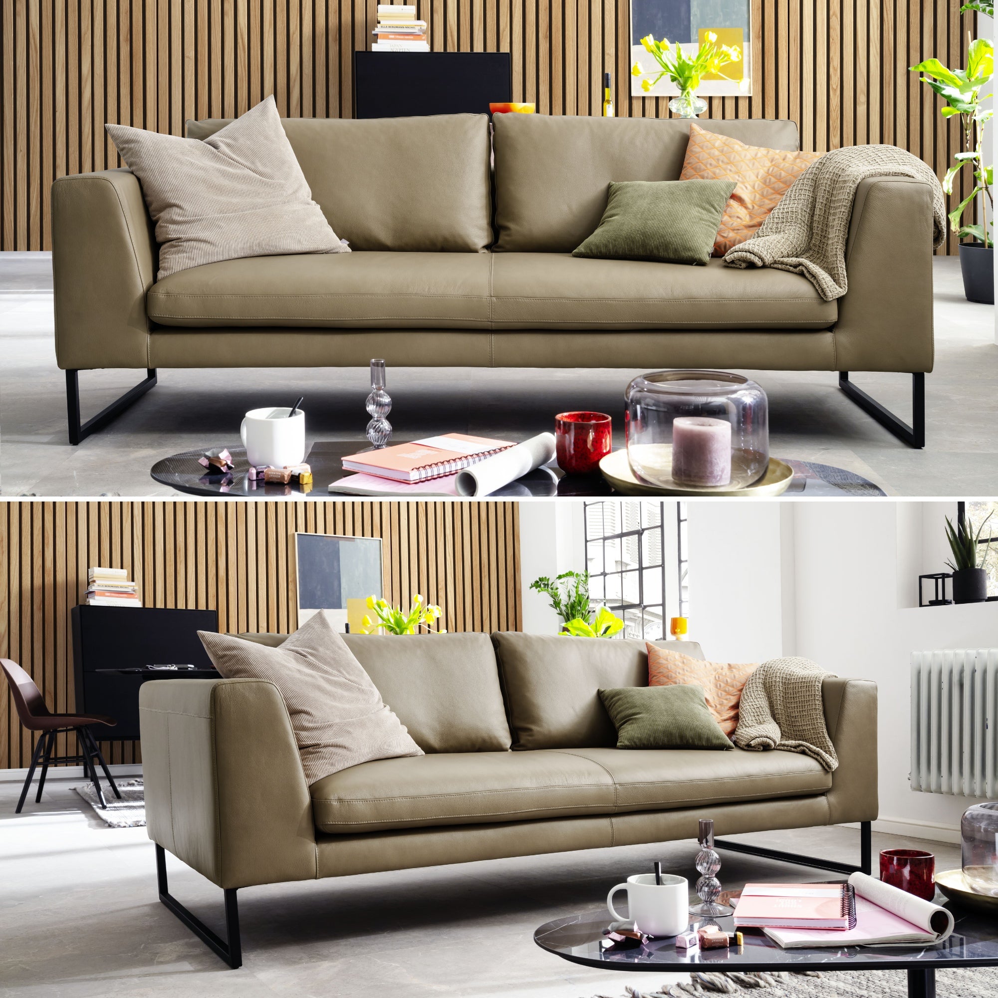 RAUM.FREUNDE Sofa Helmi 3 Sitzer mit Metallkufen, Lederbezug Cappucchino