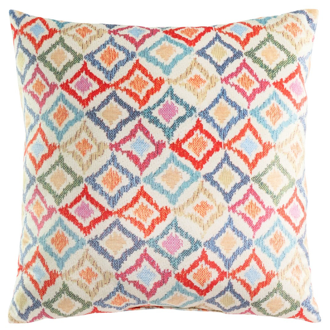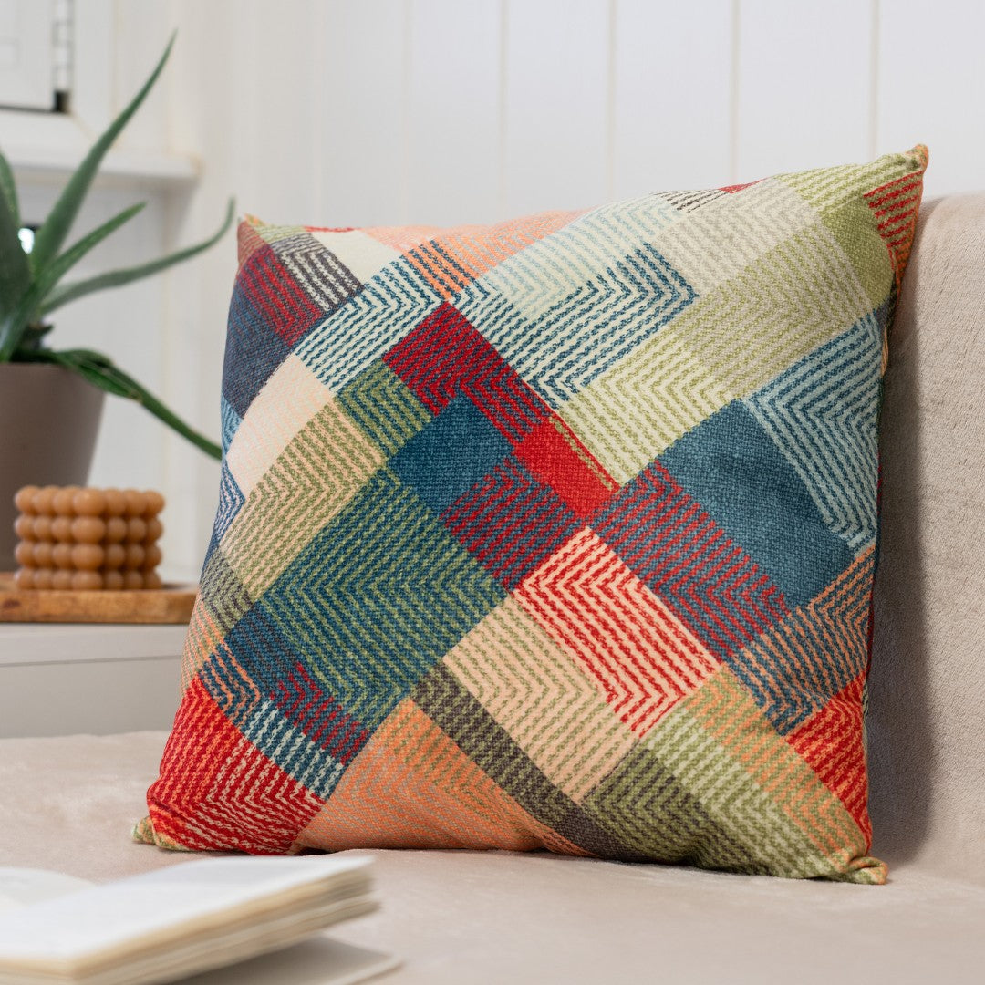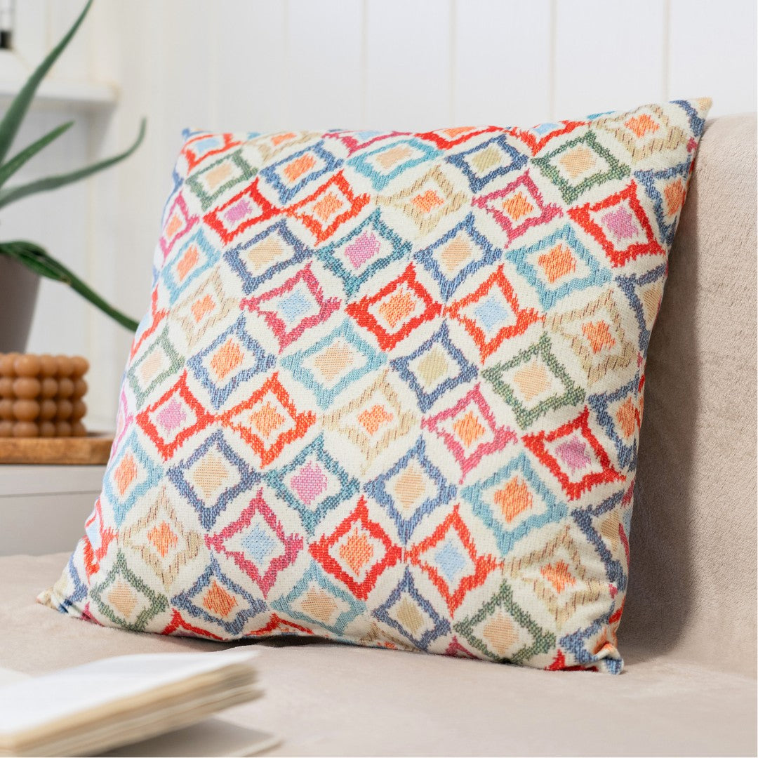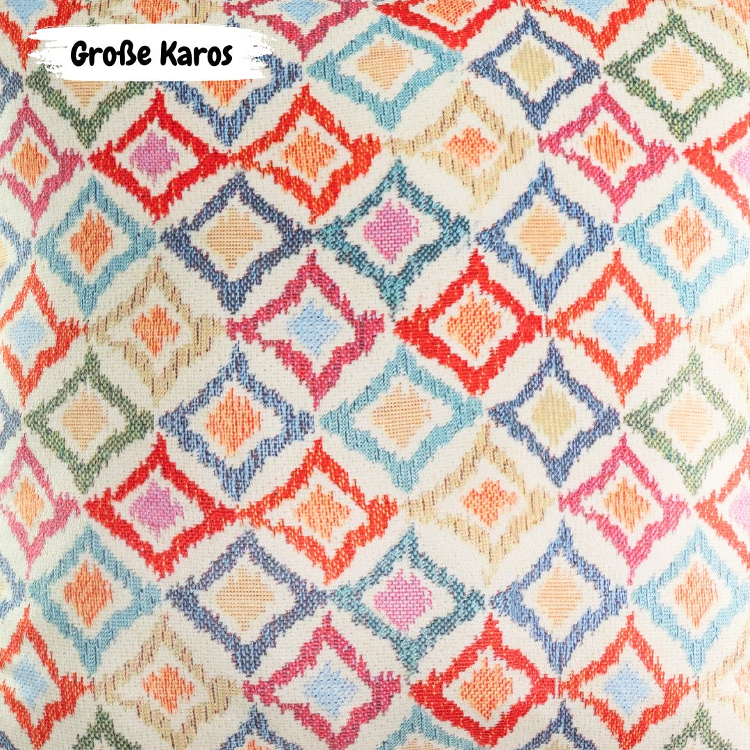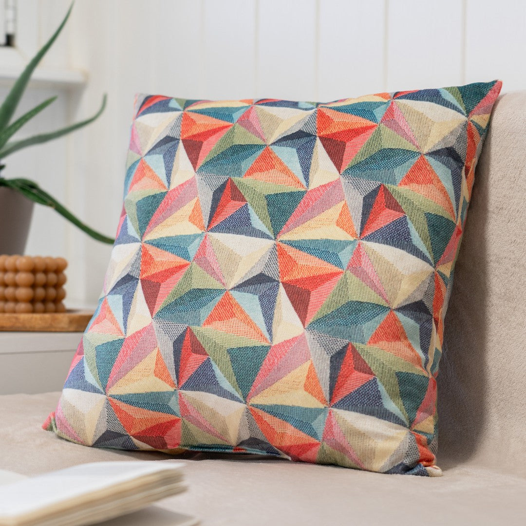 Jedes Kissen ist komplett ausgestattet mit einem samtig-weichen Kissenbezug, der in einem von fünf bunten, geometrischen Mustern erhältlich ist, die Ihre Einrichtung sofort aufwerten. Der Bezug ist abnehmbar dank eines praktischen Reißverschlusses, der nicht nur die Reinigung erleichtert, sondern auch die Möglichkeit bietet, den Look Ihres Wohnzimmers, Schlafzimmers oder jeden anderen Raum nach Belieben zu verändern.