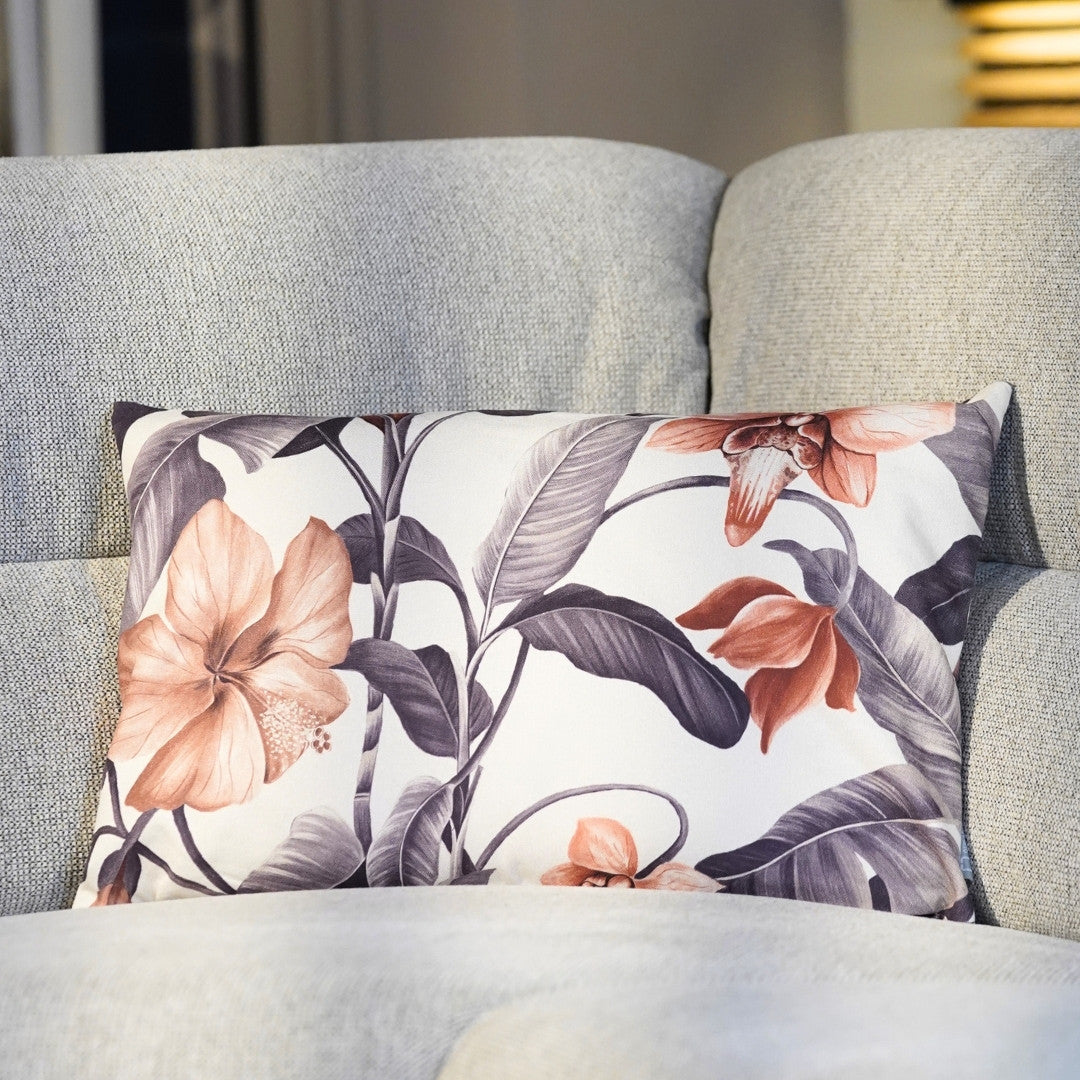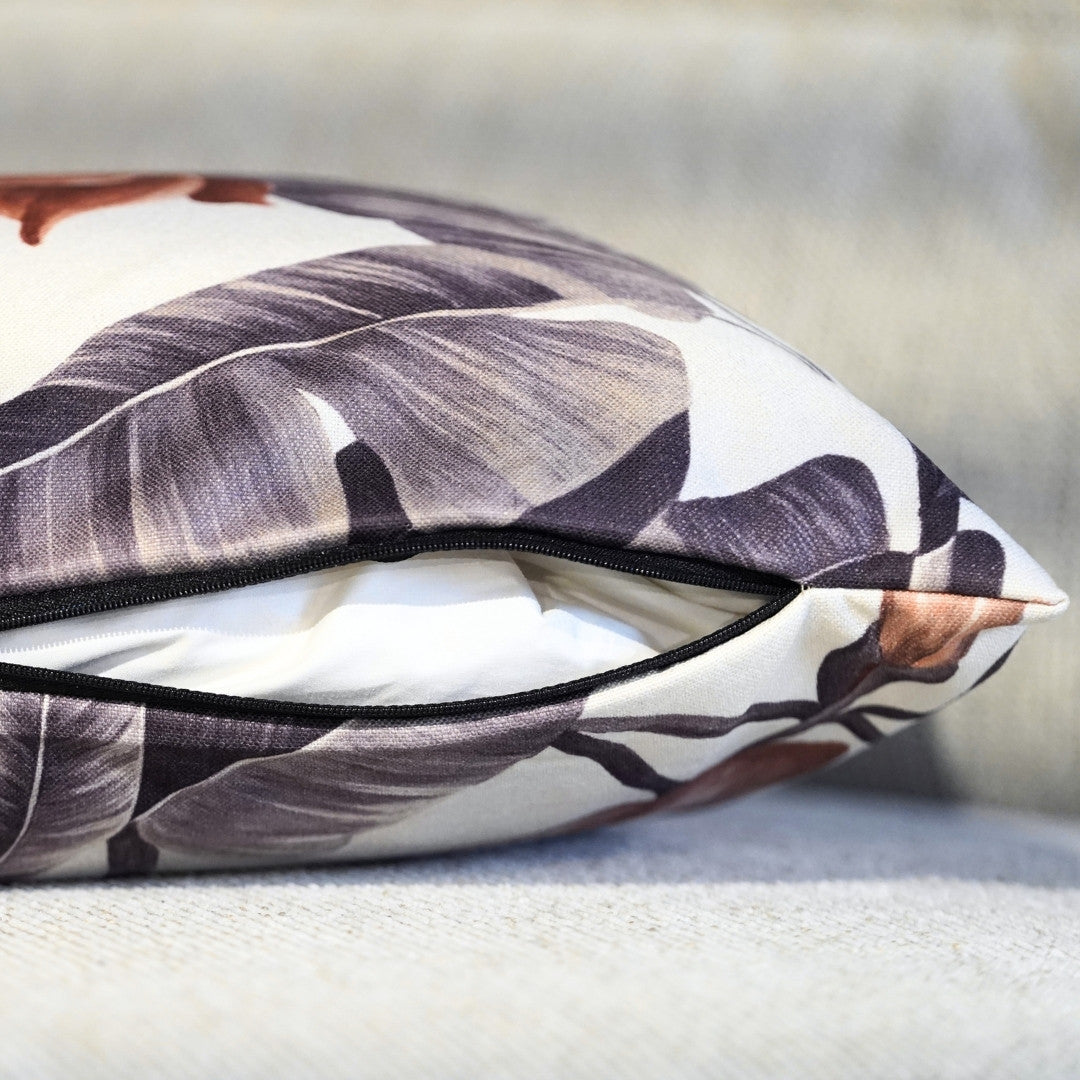 Das Dekokissen Jade Ibisco kommt komplett mit einem Kissenbezug und einer Vliesfüllung, die für angenehmen Komfort und Weichheit sorgt. Das florale Blättermotiv mit einem einfarbigen Untergrund und einem Printmuster in Lila oder Neutral verleiht Ihrem Wohnbereich eine frische, natürliche Note und passt zu verschiedenen Einrichtungsstilen.