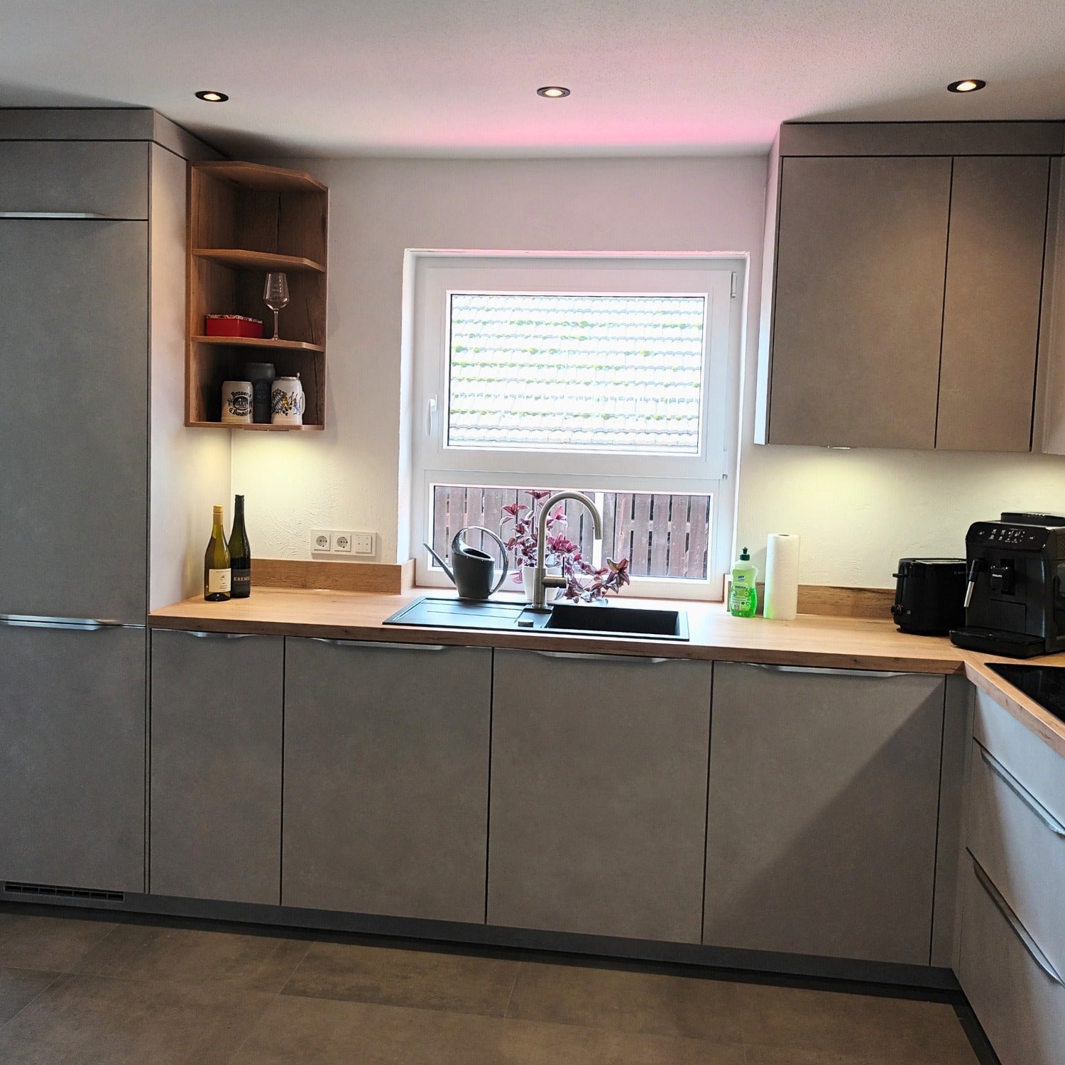 Unsere Referenzküche wurde speziell für Herrn S. aus Bürgstadt bei Miltenberg entworfen. Die Planung berücksichtigt individuelle Wünsche sowie funktionelle Anforderungen und zeigt, wie eine perfekt abgestimmte Küche sowohl optisch als auch praktisch überzeugen kann.